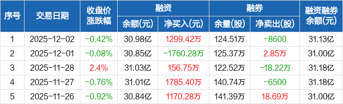 长安汽车:融资净买入1299.42万元,融资余额30.98亿元(12-02)