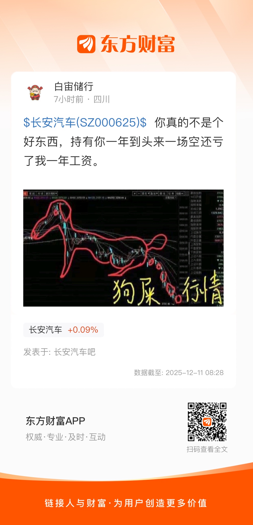 $长安汽车(SZ000625)$  你真的不是个好东西,持有你一年到头来一场空还亏了我一年工资。