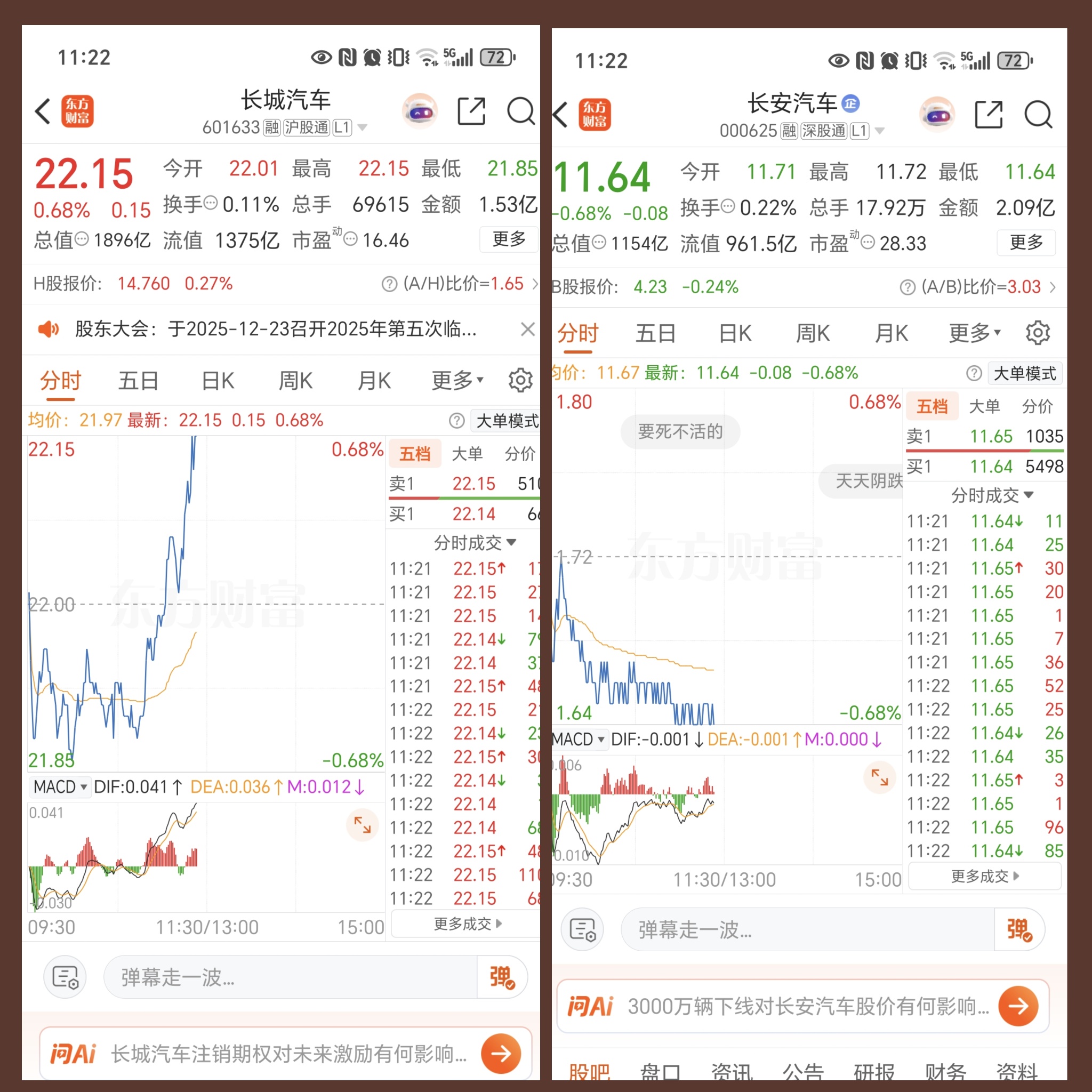 $长安汽车(SZ000625)$ 11:22,长城都不带长安玩了