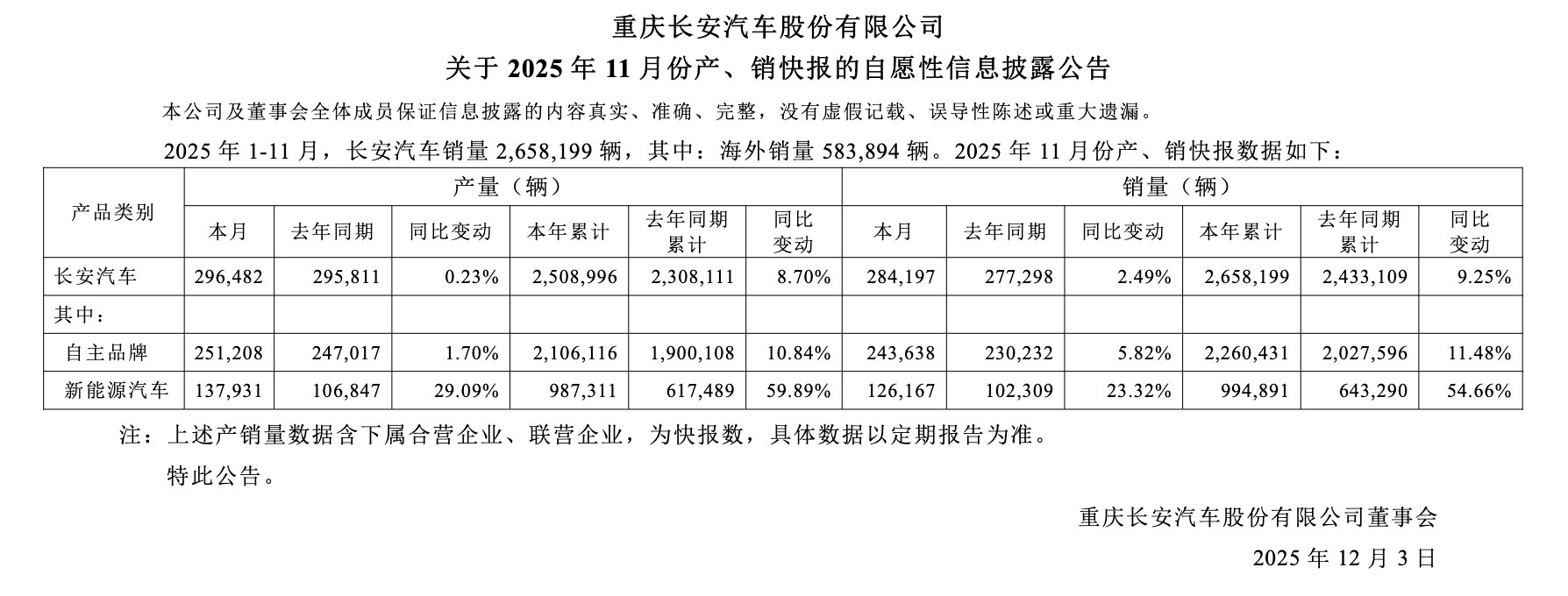 这也与长安汽车和东风汽车的基本盘不同有关。根据2025年11月份长安汽车产销快报,公司前11个月累计销量266万辆汽车,其中自主品牌占比超85%,即长安启源、引力等主品牌是长安汽车得以盈利的基本盘。