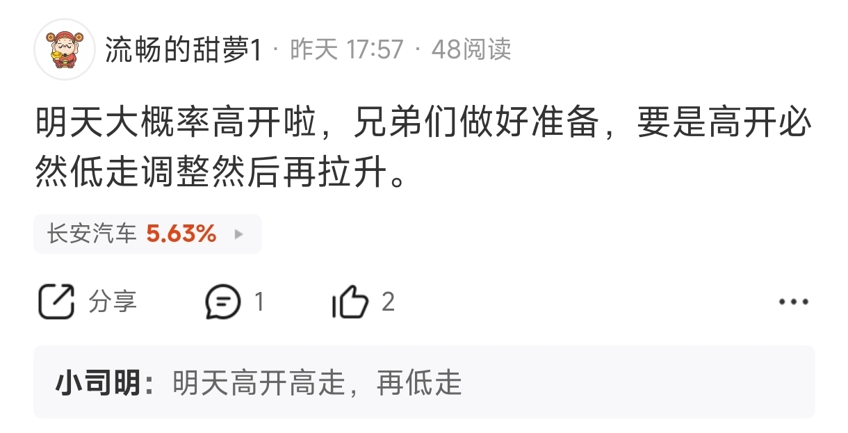 $长安汽车(SZ000625)$ 昨天在那边说的,兄弟们吃到肉没?