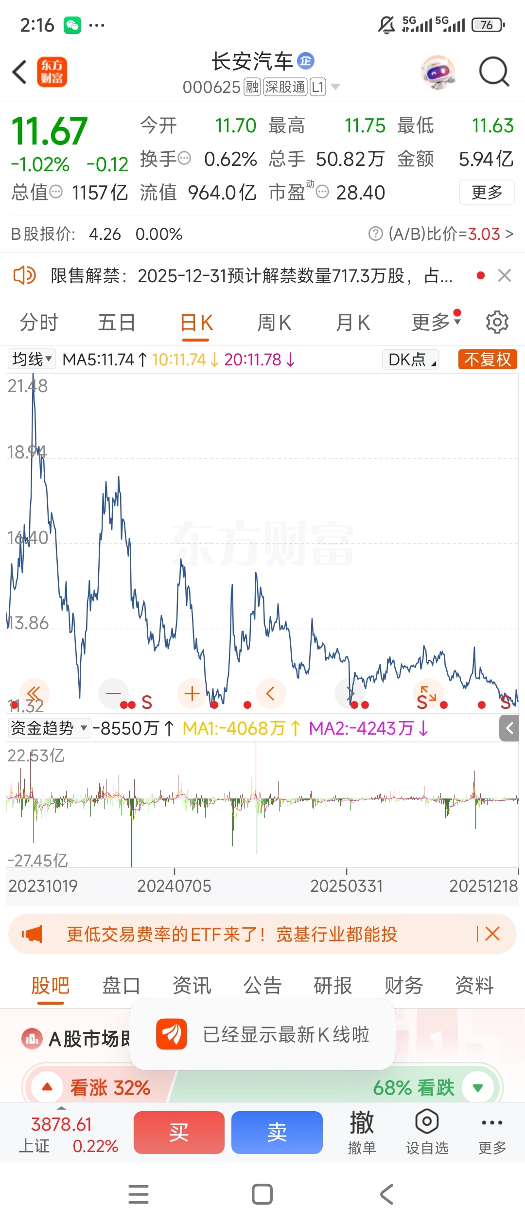 $长安汽车(SZ000625)$ 这走势