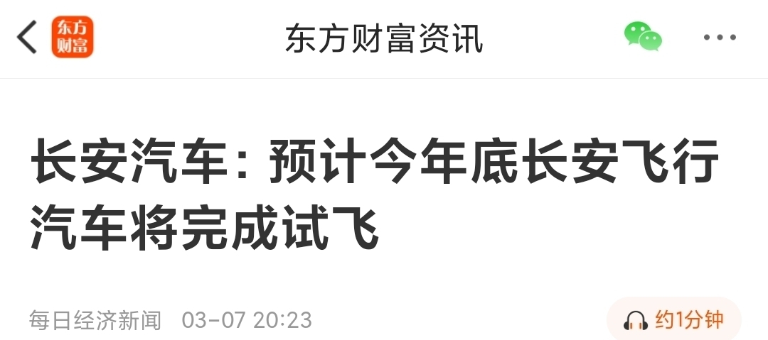 $长安汽车(SZ000625)$ 飞行汽车试飞了吗?就想着解禁套利!