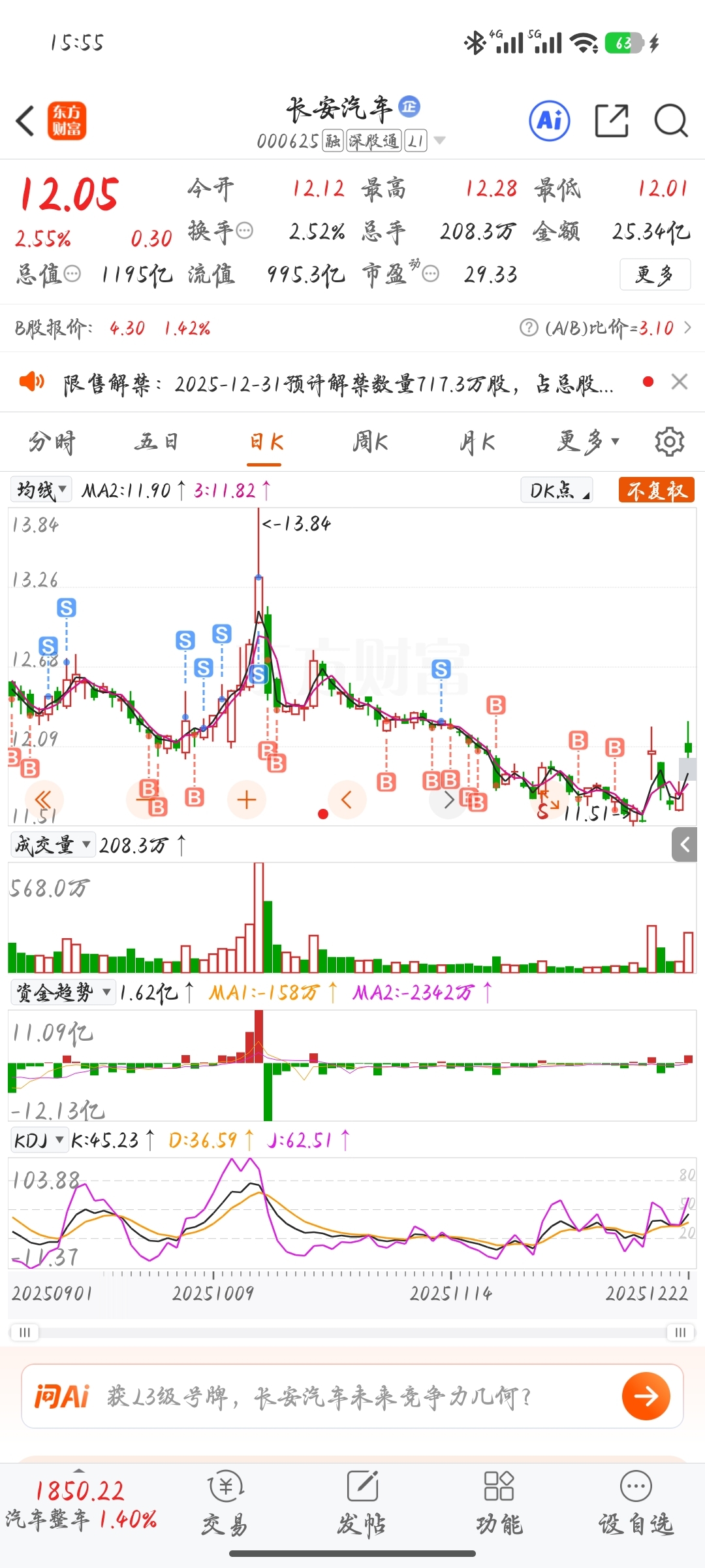 $长安汽车(SZ000625)$ 其实今天应该跑一点的,但是我没跑,按照长安的尿性,搞不好那天就要来一个大的,暂时的亏不算亏,长远来看不出反进,短线就应该出了,逢低再进