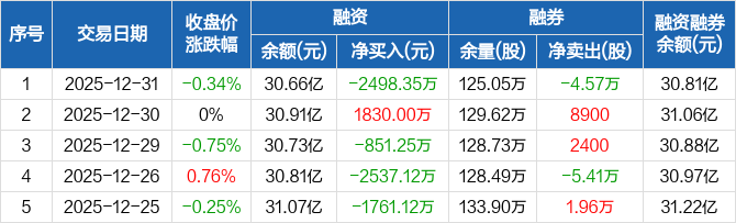 长安汽车:融资净偿还2498.35万元,融资余额30.66亿元(12-31)