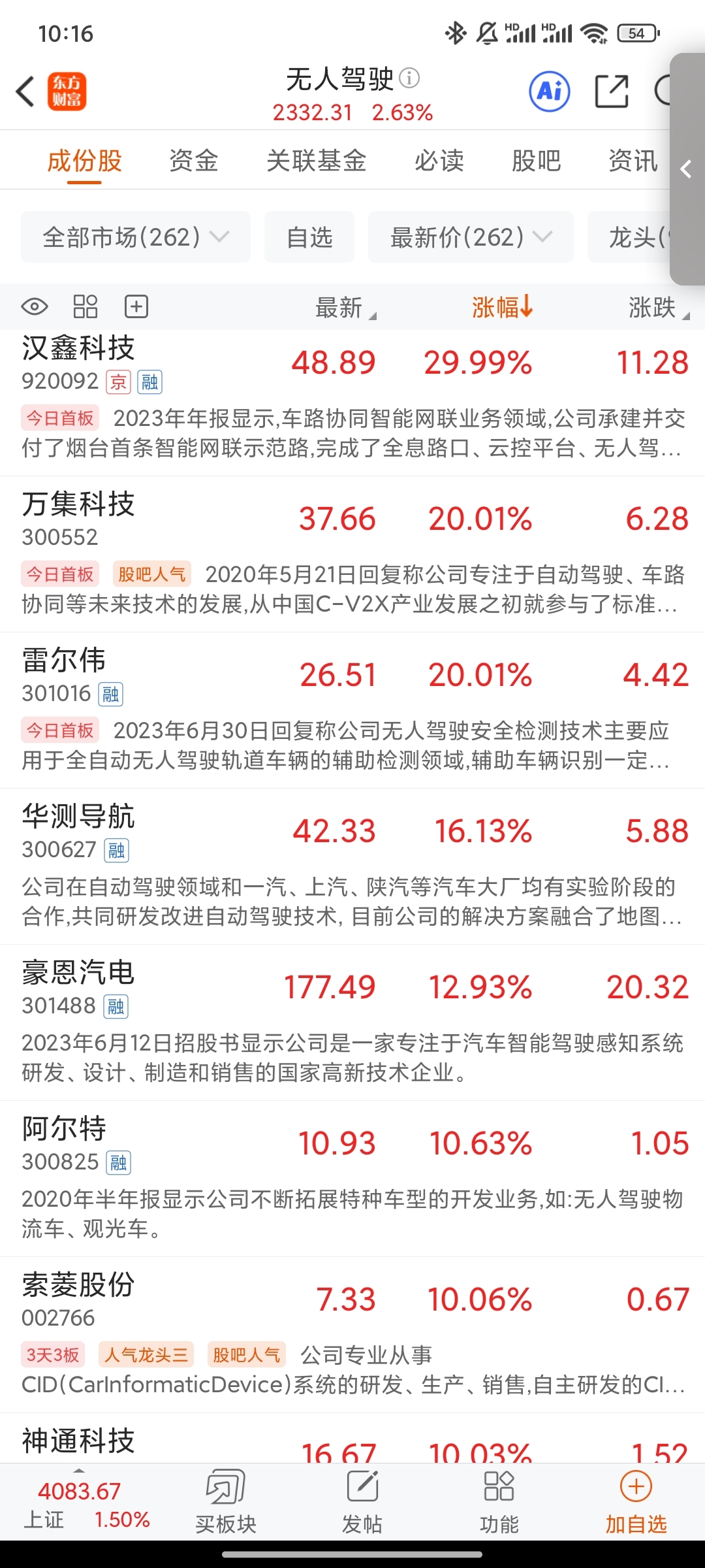 $长安汽车(SZ000625)$ 无人驾驶板块下午起飞,20家涨停!