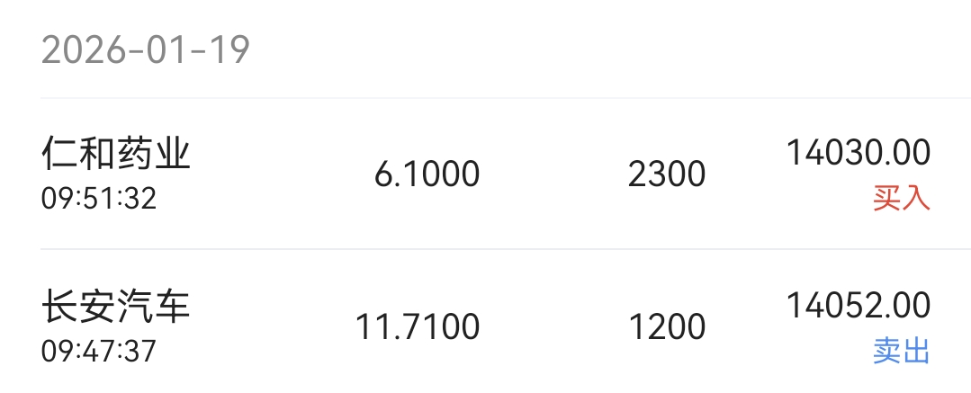 守着两个死股来回切换:11.71卖了长安1200股6.10买了仁和2300股,卖