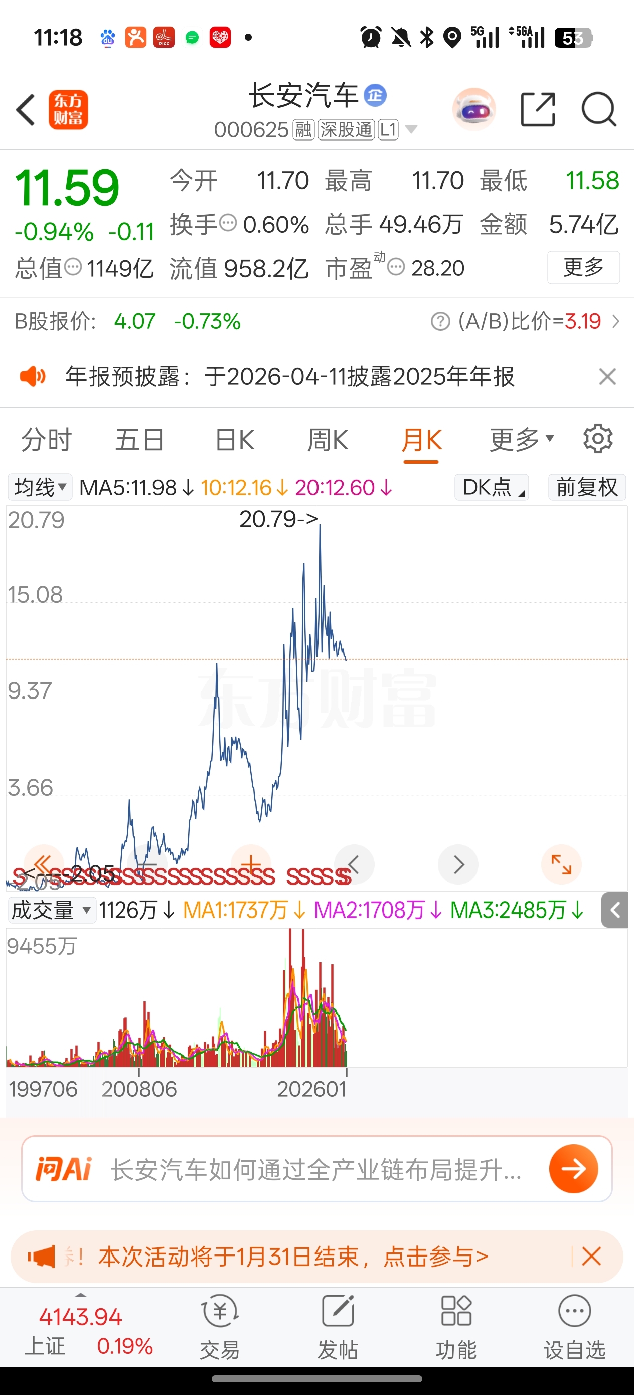 $长安汽车(SZ000625)$ 感觉还在历史高位