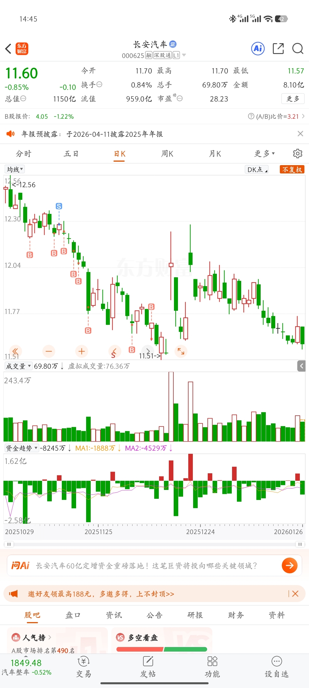 $长安汽车(SZ000625)$ 市场永远是对的,我错了,错了就改,离场等机会,亏损百分之4我的认知赚不到长安的钱,看样子还有更低的位置