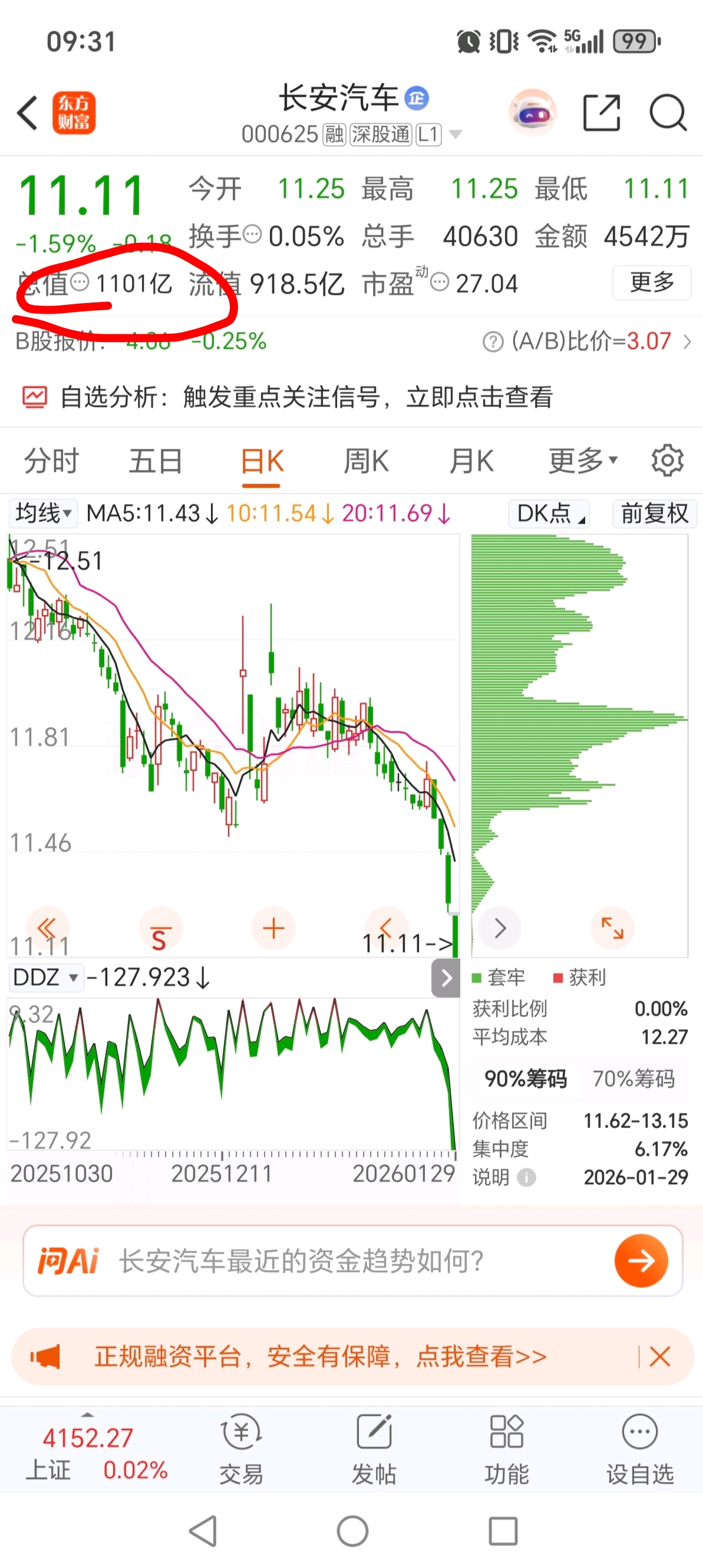 $长安汽车(SZ000625)$ 1100亿市值能守住吗