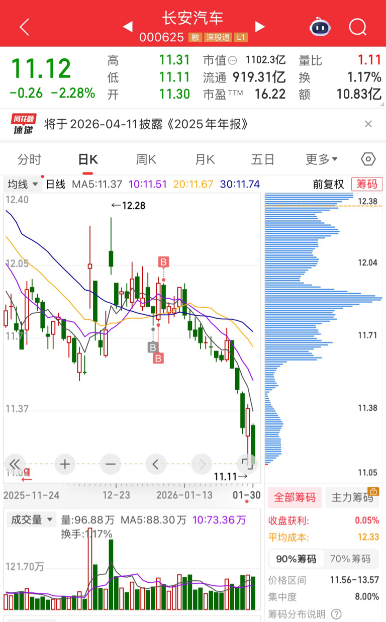$长安汽车(SZ000625)$ 这股收盘有0.05%获利,60多万股民算起来还有300多人挣钱,高手!