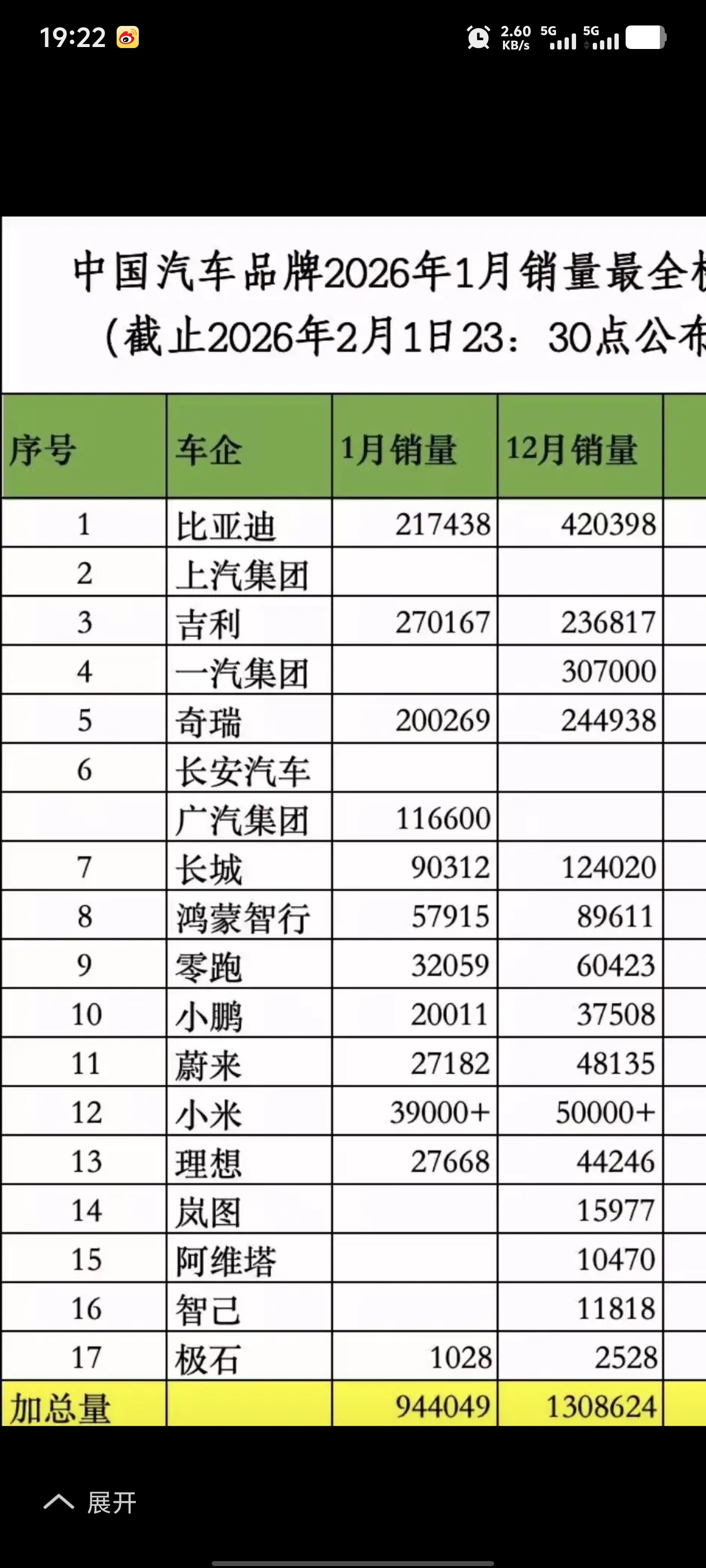 这图上加上上汽32万辆,一共销量126万辆,中汽协还是乘联会说各车企一共销售18