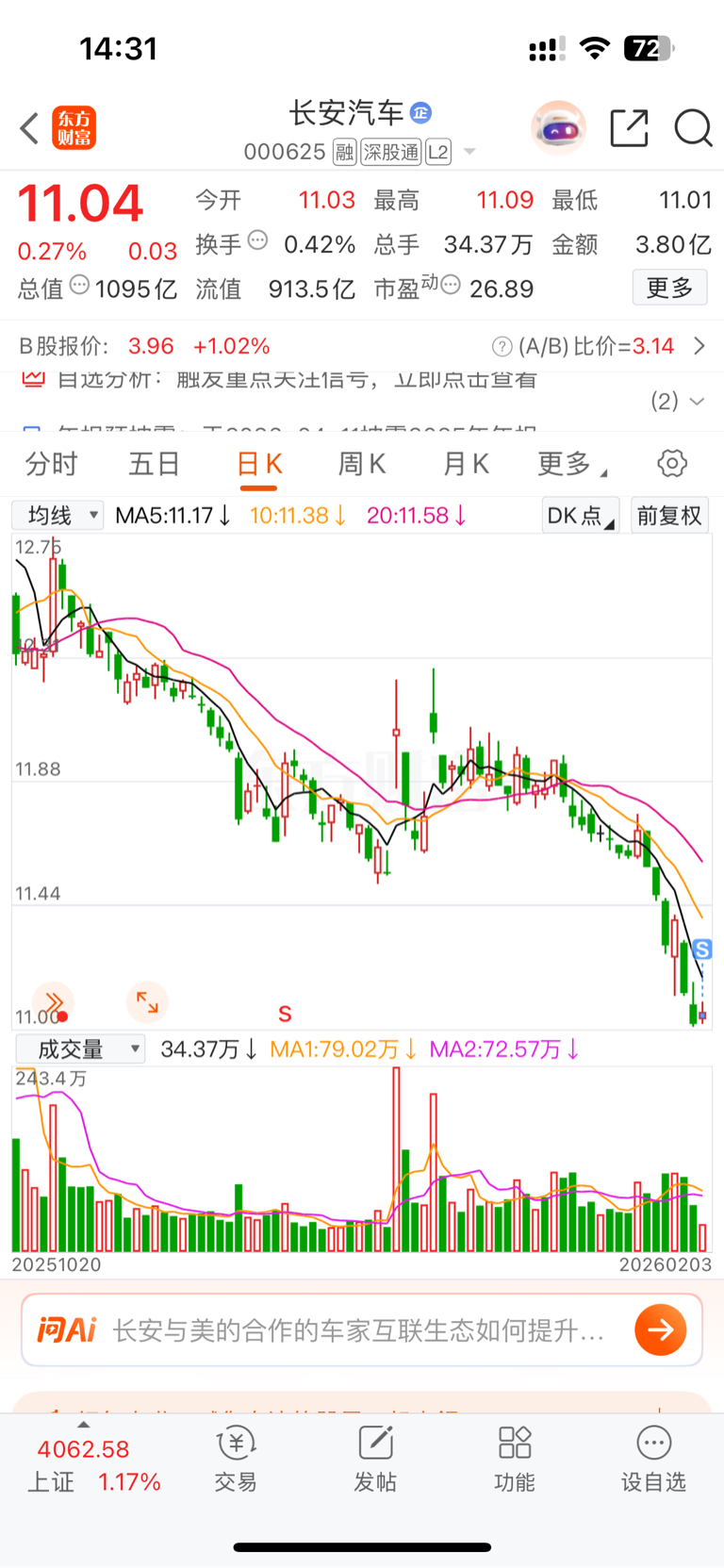 $长安汽车(SZ000625)$ 清仓了,持股两年多,买个教训了,不会再看这个股跟这个品牌相关的车。