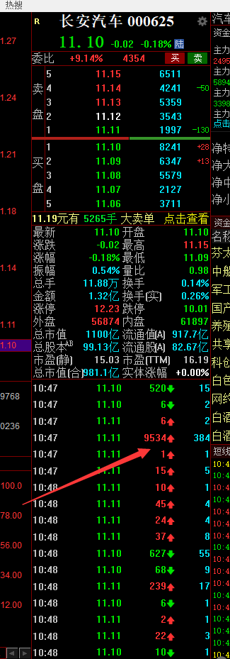 完了截图给大家看一下,每一次成交的都向下,就是主力故意等下面散户托单多的时候,偷偷大单出一下,这样不会让股价打得过于低,又可以出货。