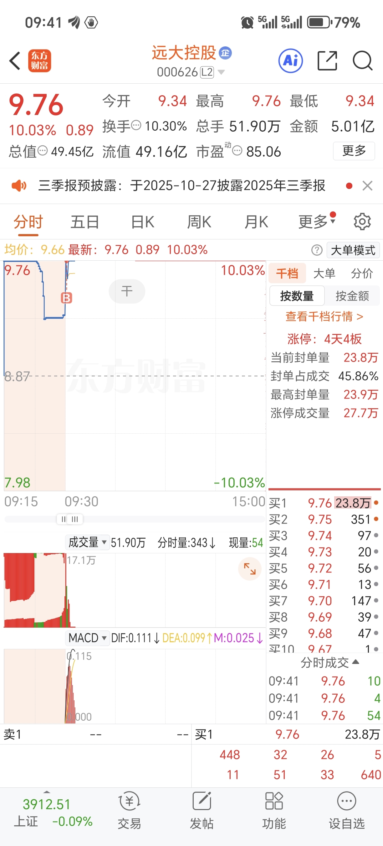 $远大控股(SZ000626)$ 打板第二天,今天打的是最高的连板
