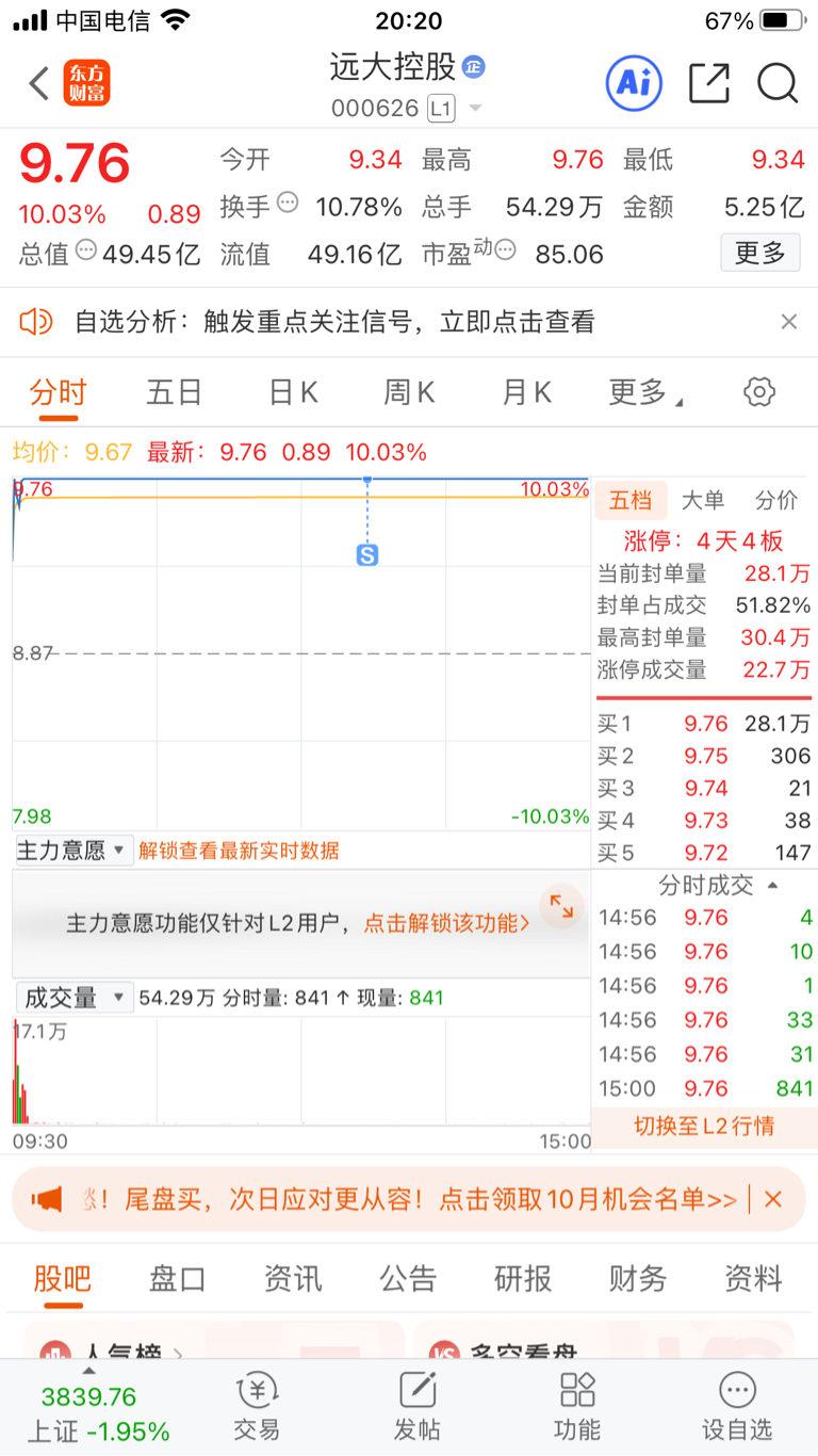 $远大控股(SZ000626)$ 哎,周末急用钱,卖了几成仓,明知道下周还要继续涨停,哎