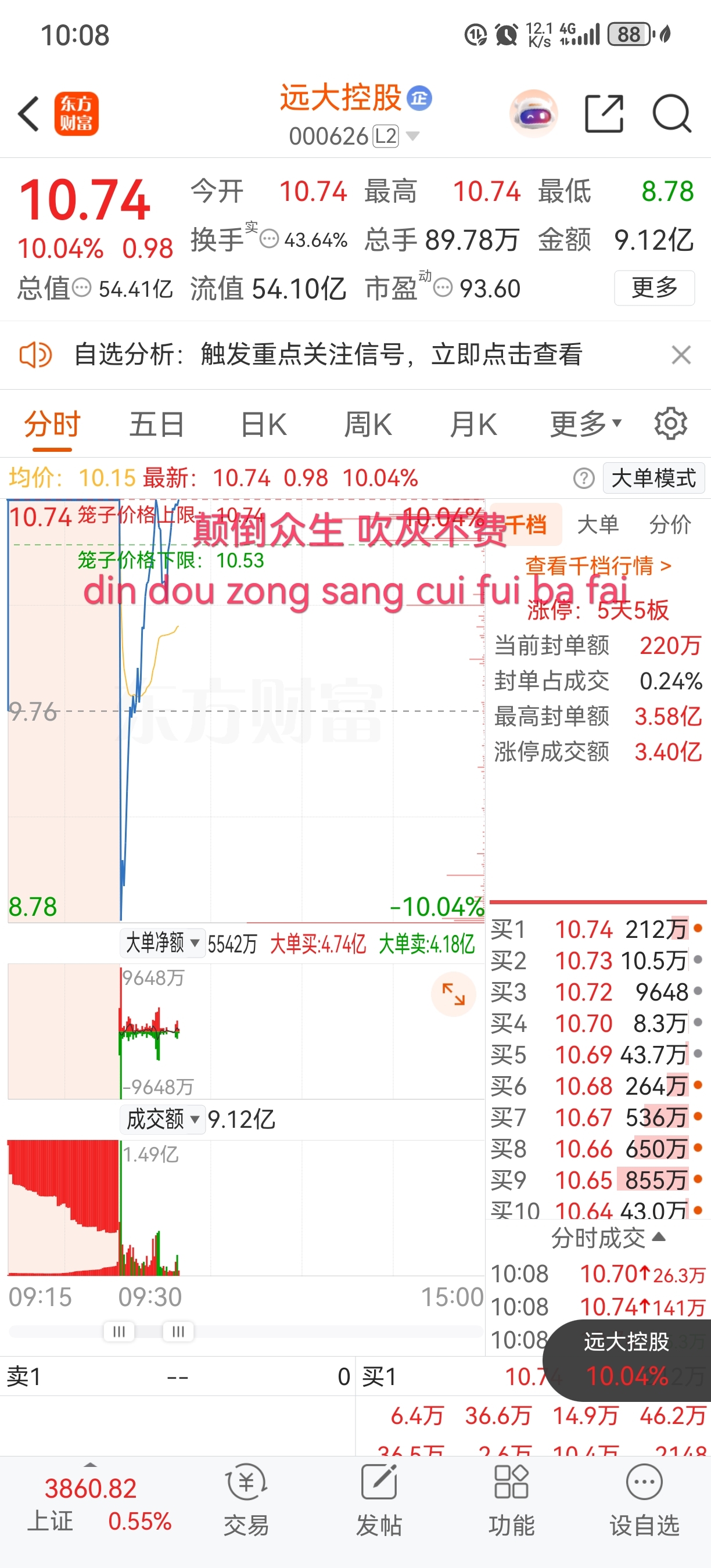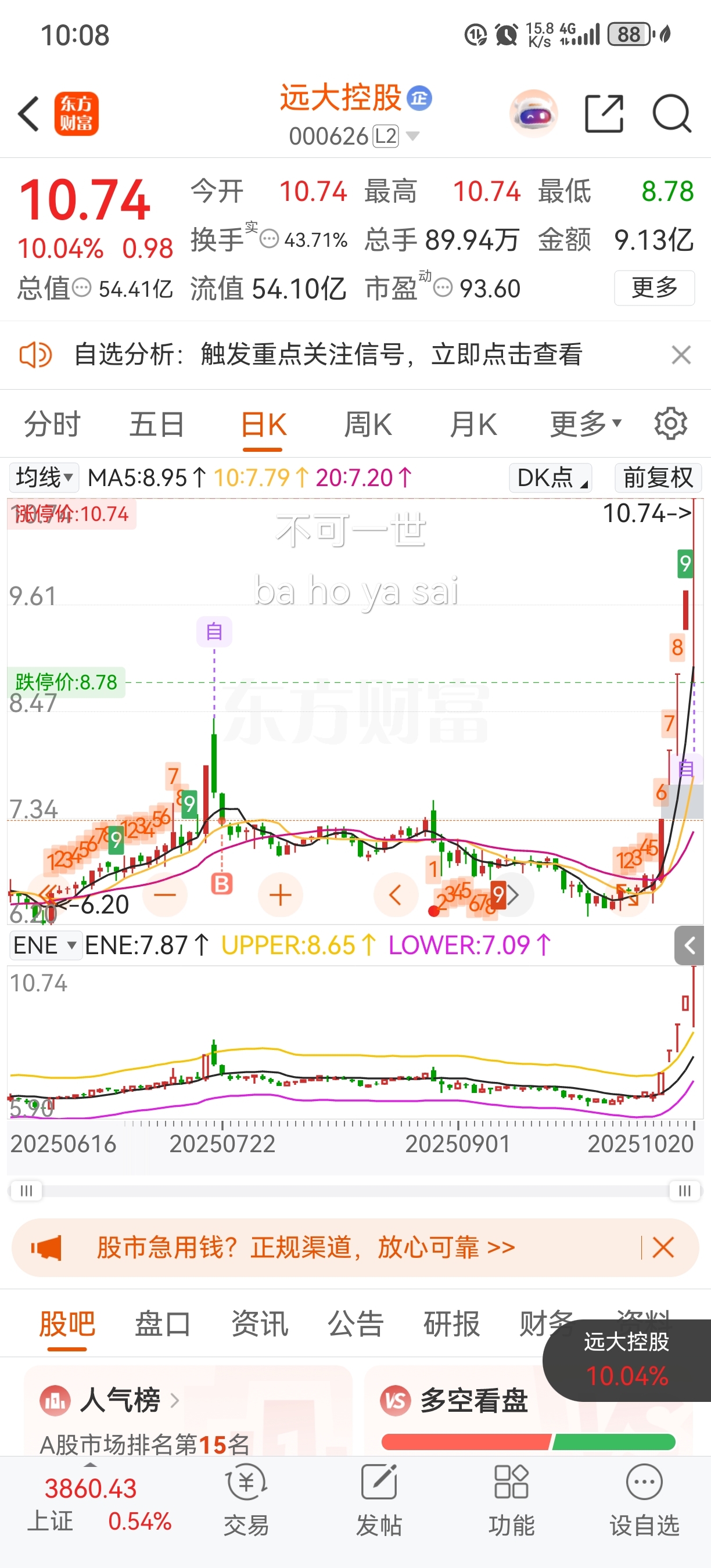 $远大控股(SZ000626)$ 宝宝 你太棒了 就这样 别玩这么刺激的了 二旬老人扛不住 别问 为啥不做t 问就是做t技术贼菜
