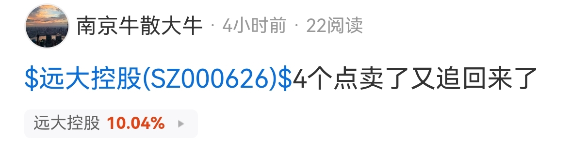$远大控股(SZ000626)$ 大牛的盘感怎么样?超短线就是要盘感,每一分钟的买卖逻辑都不一样。