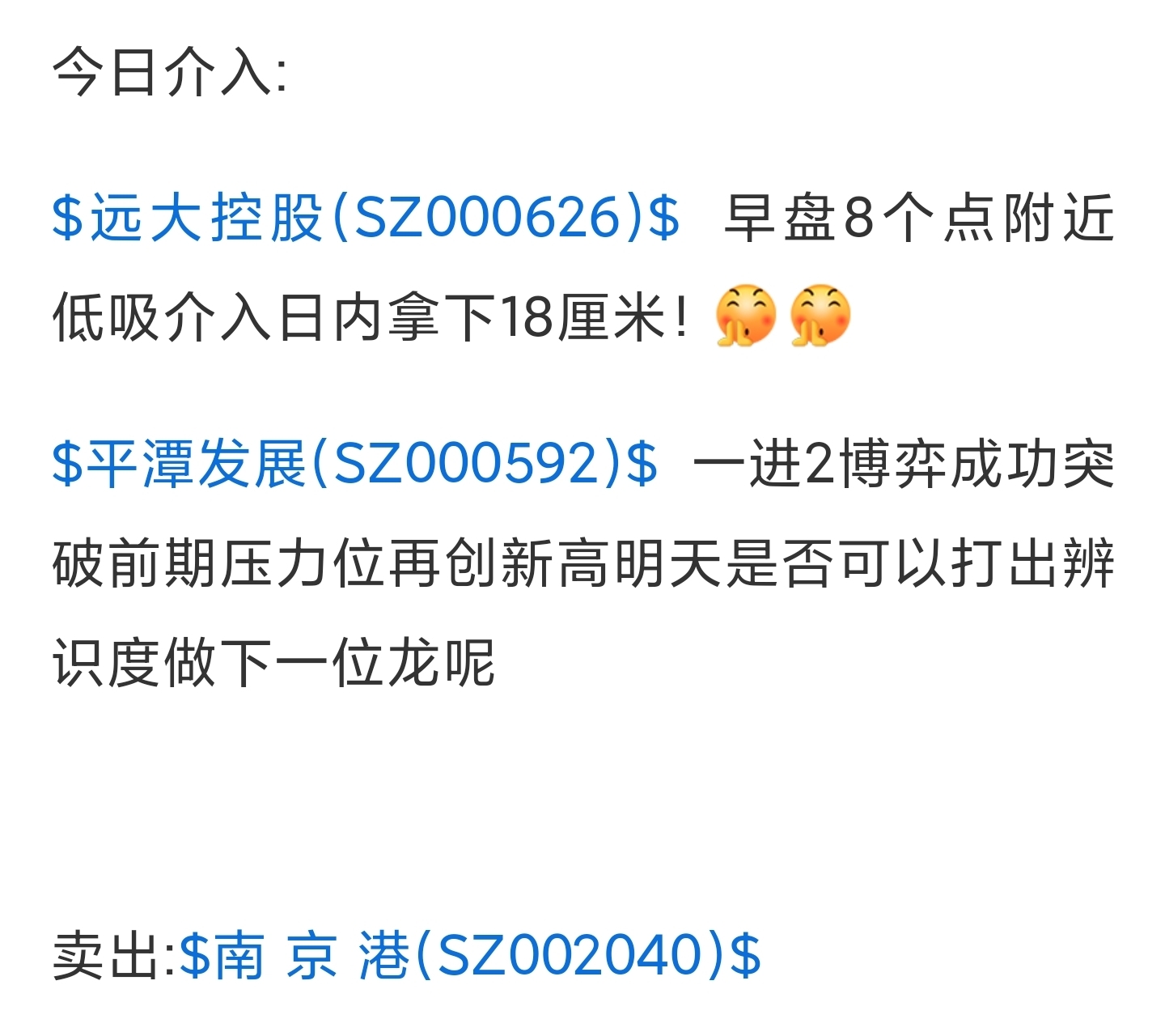 $远大控股(SZ000626)$ $平潭发展(SZ000592)$ 卖出:$南 京 港(SZ002040)$