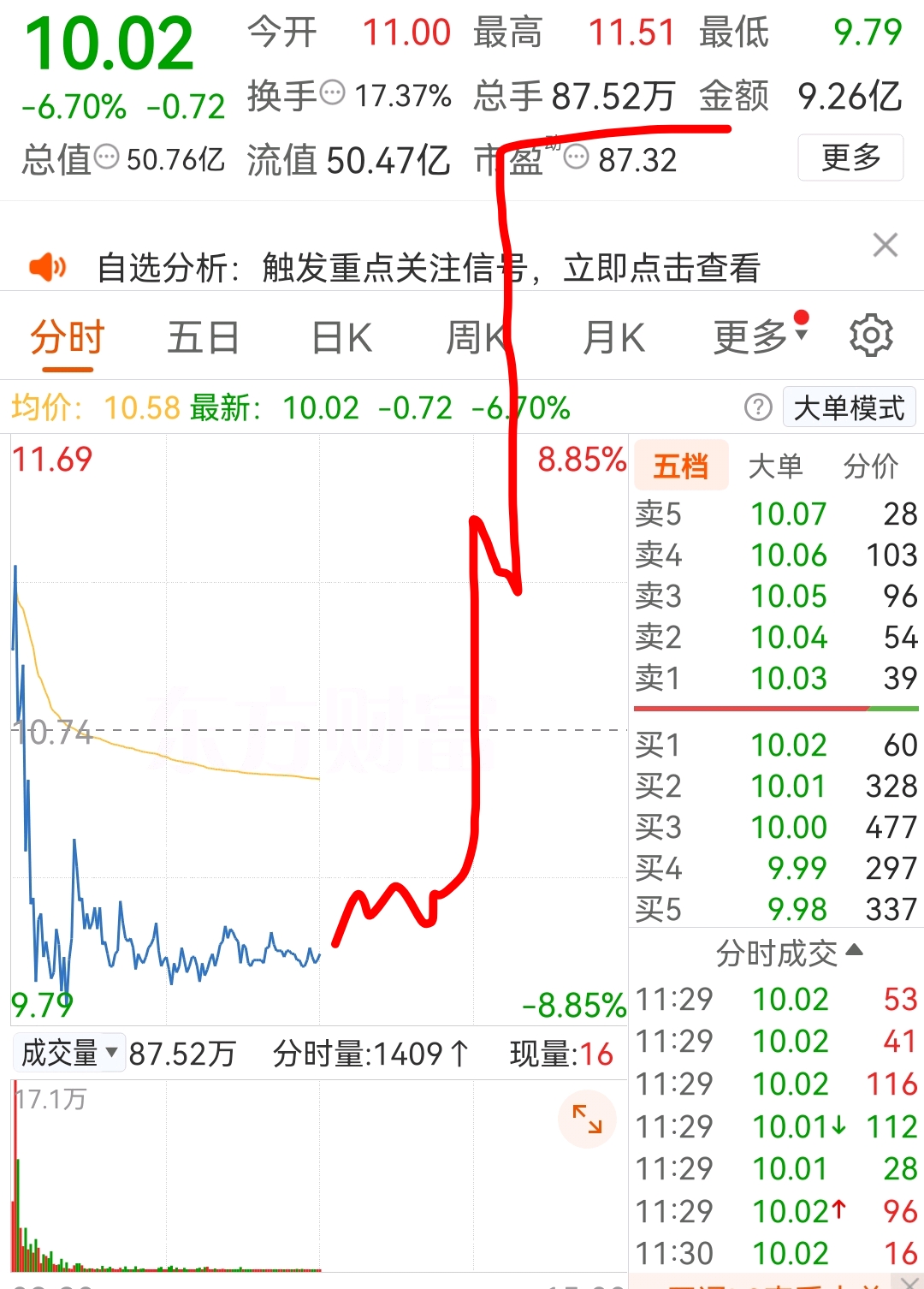 竞价出来正常情况是直线拉涨停,走的太弱了。但是这走势控制很好,午盘我叫人点火!!