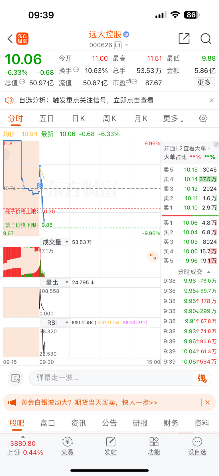 $远大控股(SZ000626)$ 昨天水底进的,今天主力把我洗走了,留下的兄弟发财