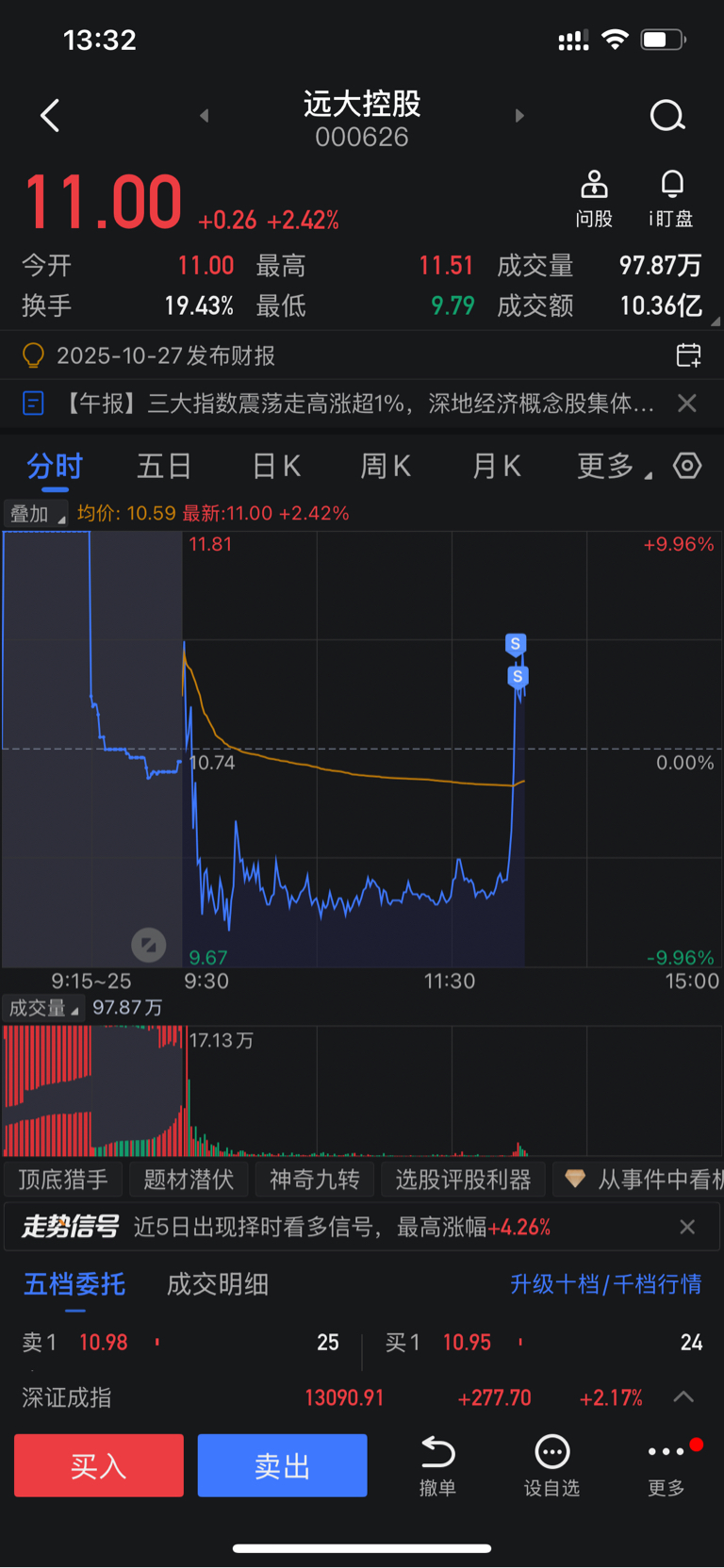 $远大控股(SZ000626)$ 早上没走,给机会就跑吧