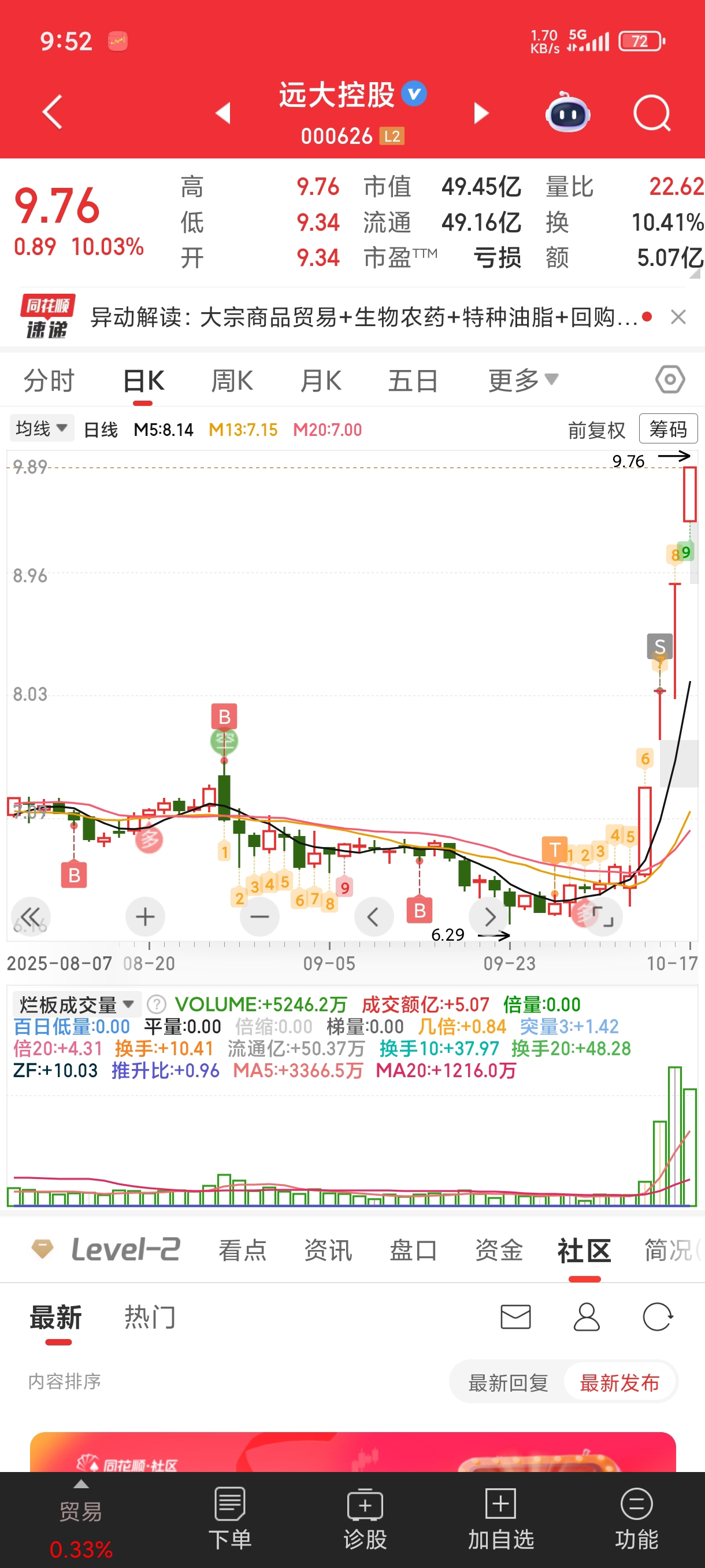 $远大控股(SZ000626)$ 只有我跑的最早吧。卖的真可惜。。。二板就没拿住。