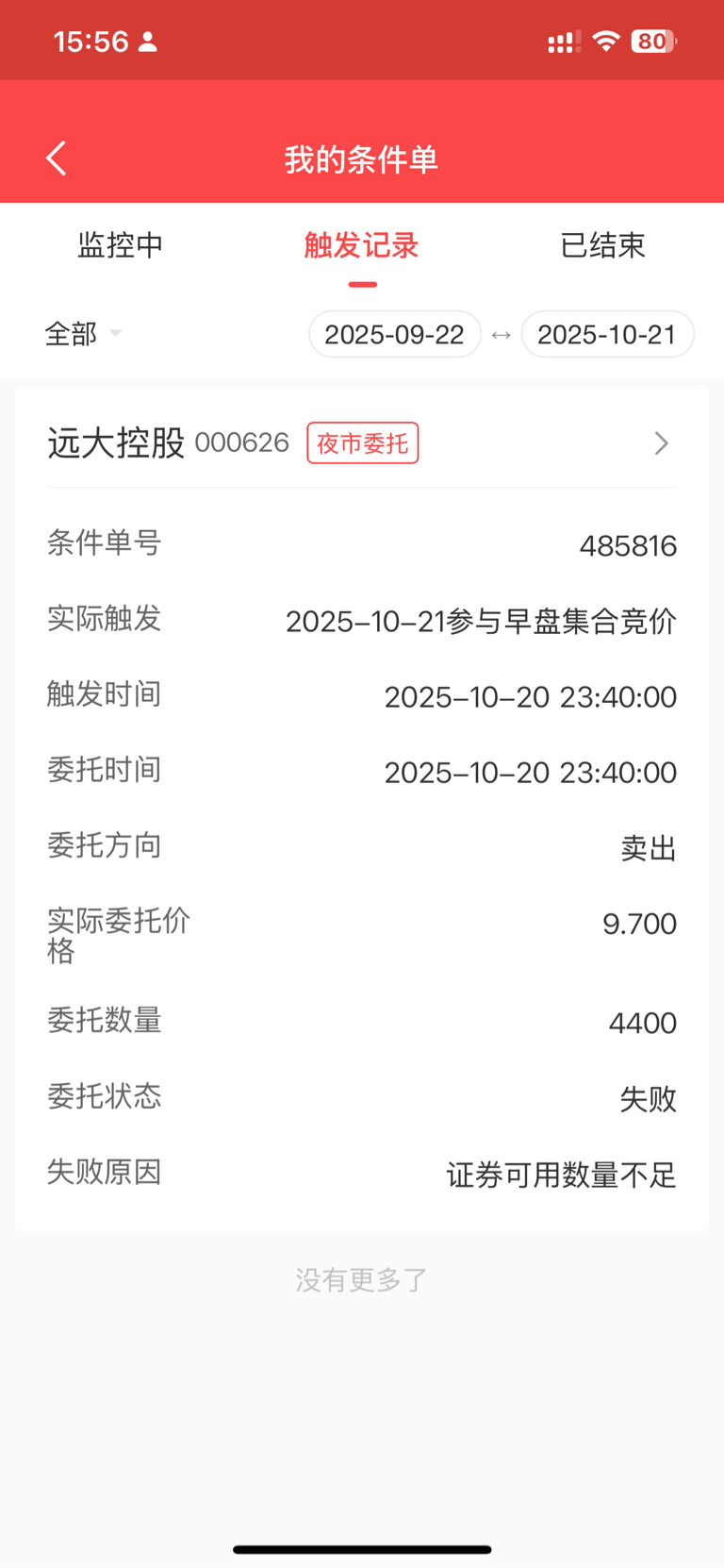 昨晚挂跌停竞价单的时候,证券数量点错了……如果数量没搞错的话,说不定早盘竞价的时