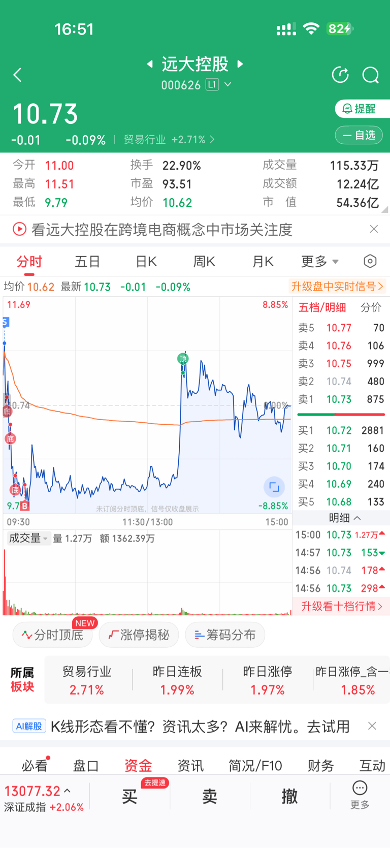$远大控股(SZ000626)$ 没什么好害怕的,今日继续
