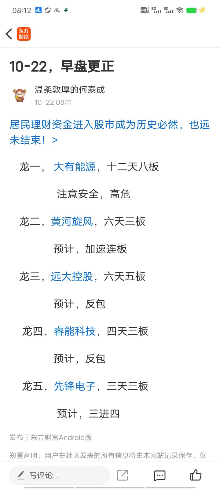 温馨提示: 1.根据《证券法》规定,禁止编造、传播虚假信息或者误导性信息,扰乱证券市场;2.用户在本社区发表的所有资料、言论等仅代表个人观点,与本网站立场无关,不对您构成任何投资建议。用户应基于自己的独立判断,自行决定证券投资并承担相应风险。《东方财富社区管理规定》