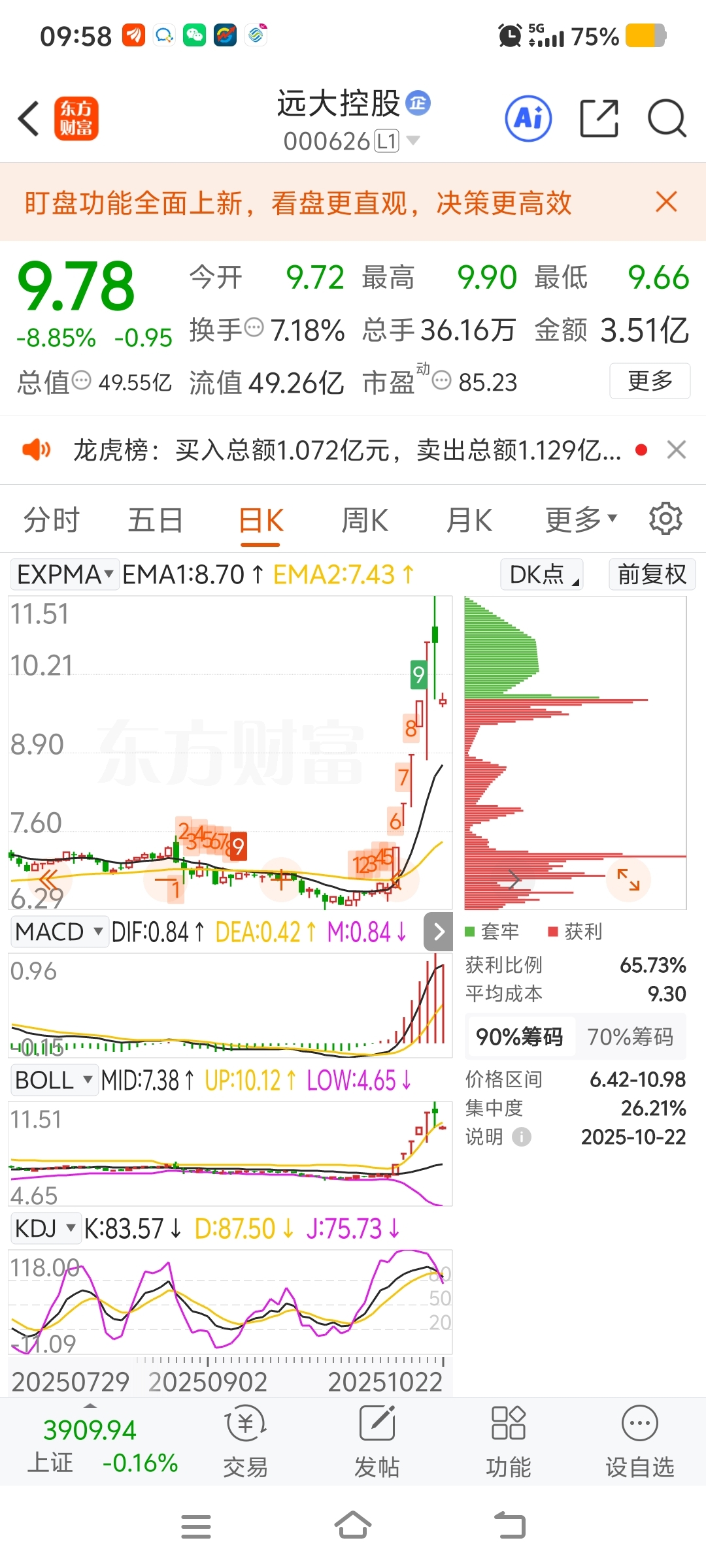 $远大控股(SZ000626)$ 底部筹码未松动