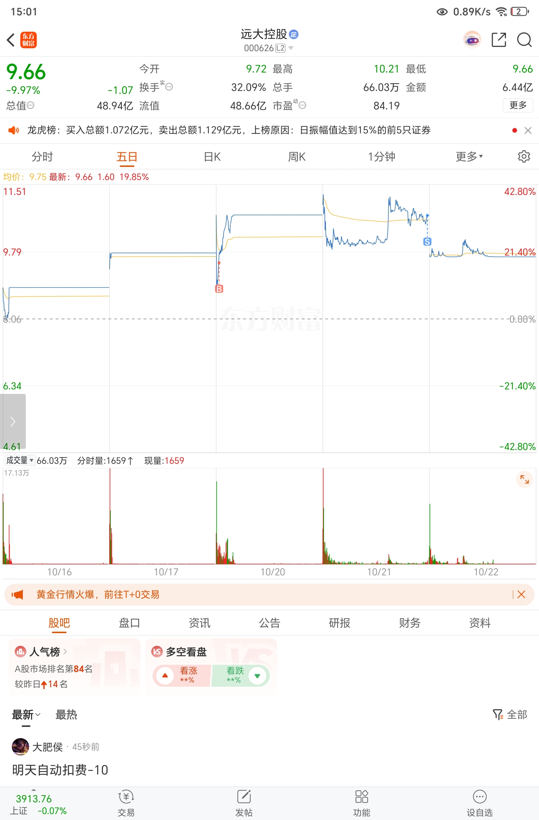 $远大控股(SZ000626)$ 还好昨天情况不对跑了