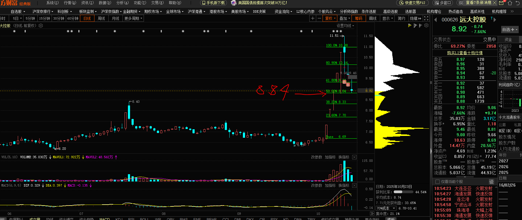 8.84地方横住,上下振动,现在止跌了,后面是几天横盘,筹码在这里兑现;主力成本7.1左右,他还有足够的空间;
