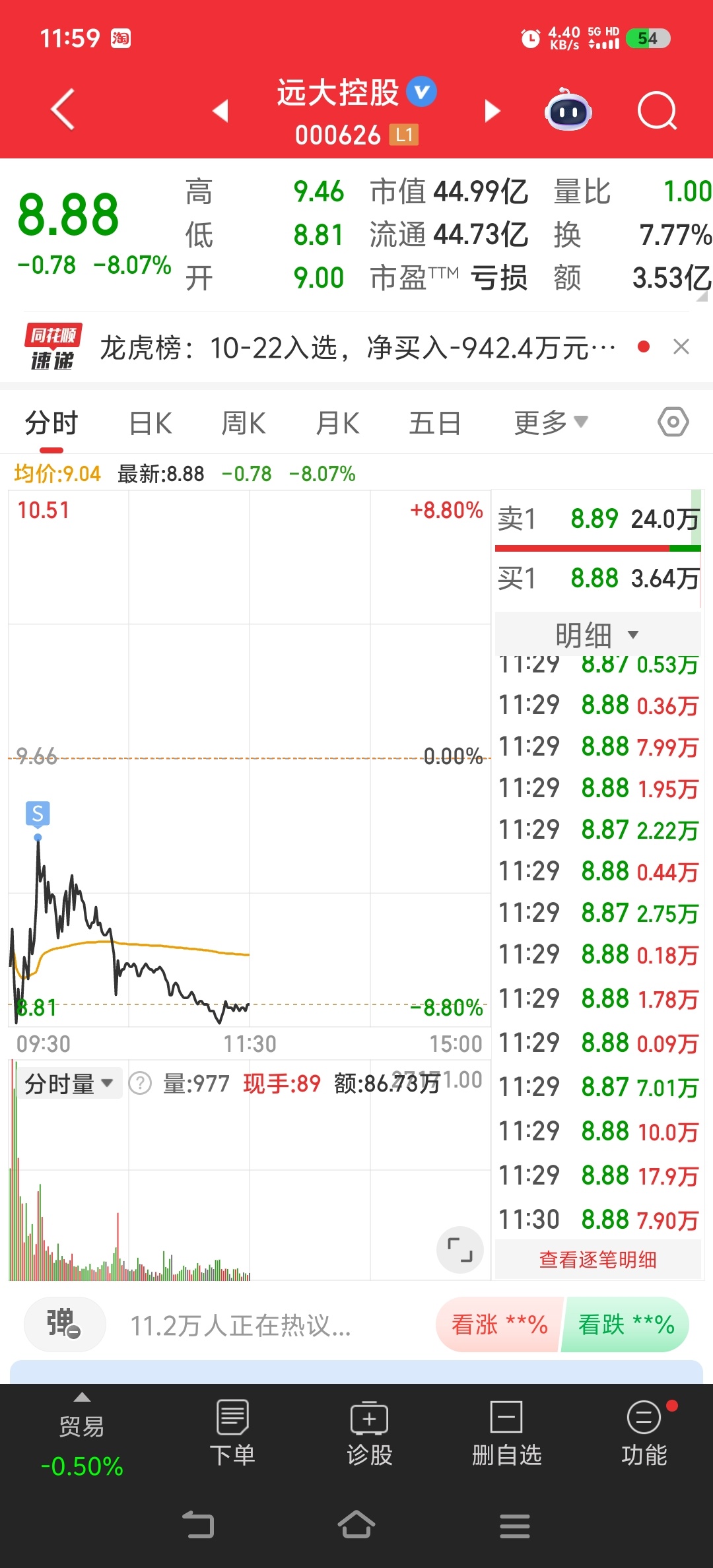 $远大控股(SZ000626)$ 还好不贪走了小亏两个点