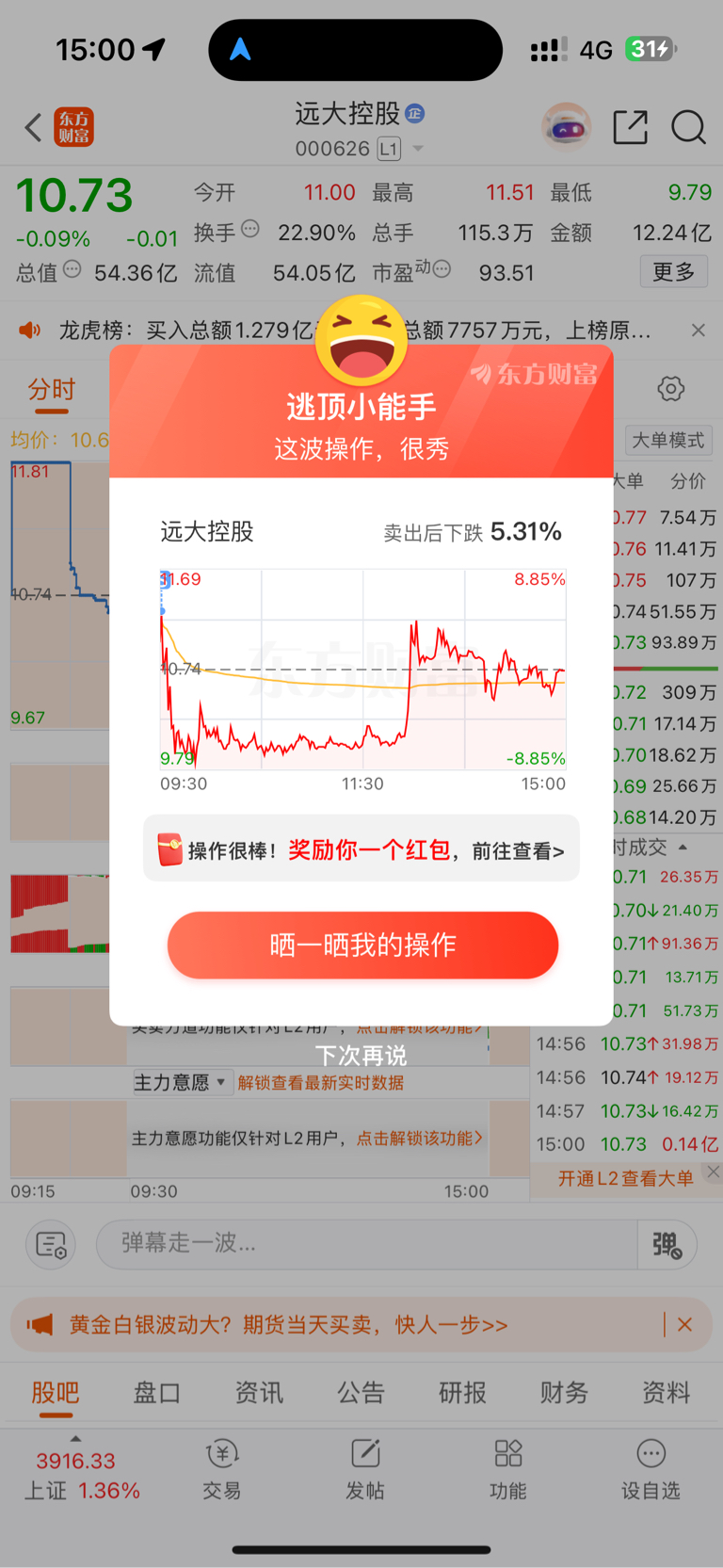 首先我早就在感恩远大的时候全部卖出完成换股然后这是这几天的操作可以看看