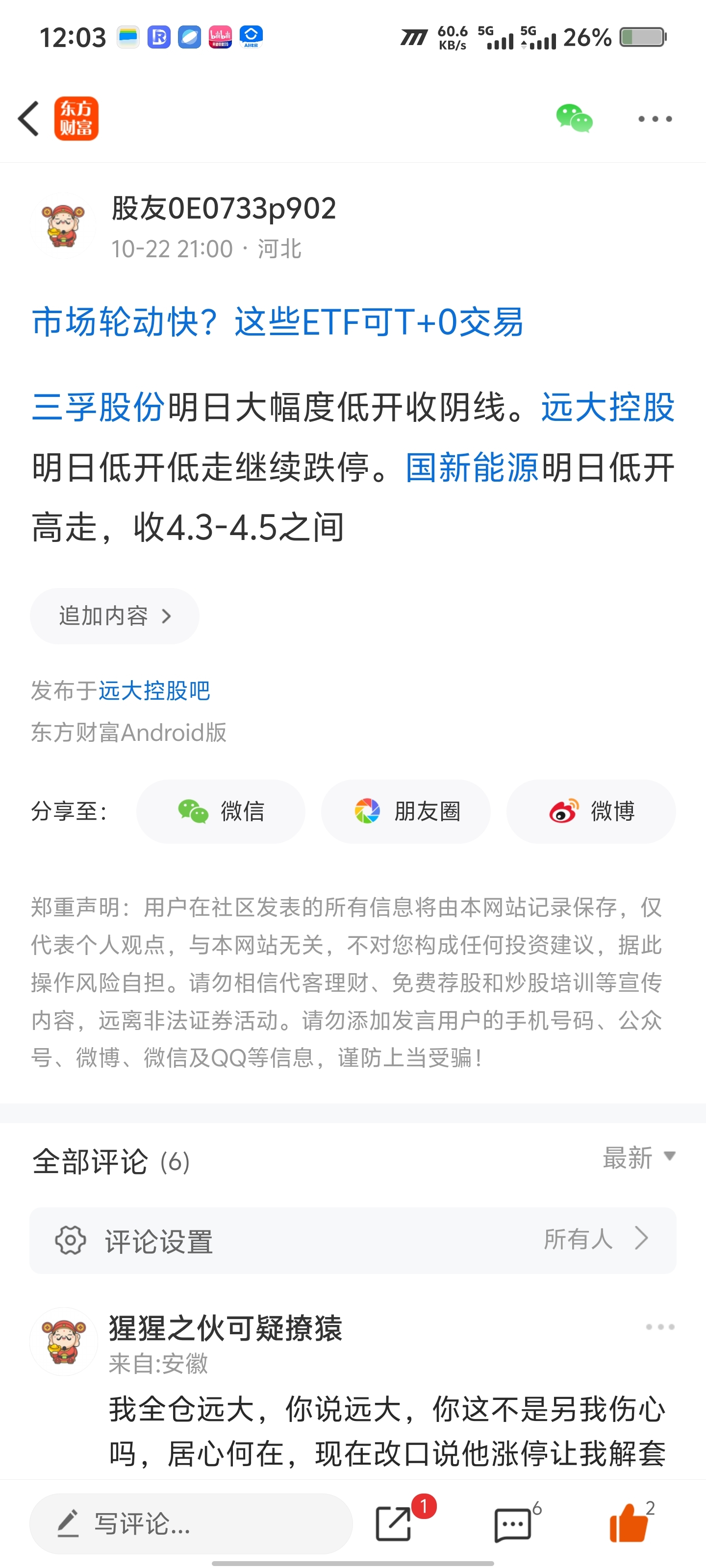 温馨提示: 1.根据《证券法》规定,禁止编造、传播虚假信息或者误导性信息,扰乱证券市场;2.用户在本社区发表的所有资料、言论等仅代表个人观点,与本网站立场无关,不对您构成任何投资建议。用户应基于自己的独立判断,自行决定证券投资并承担相应风险。《东方财富社区管理规定》