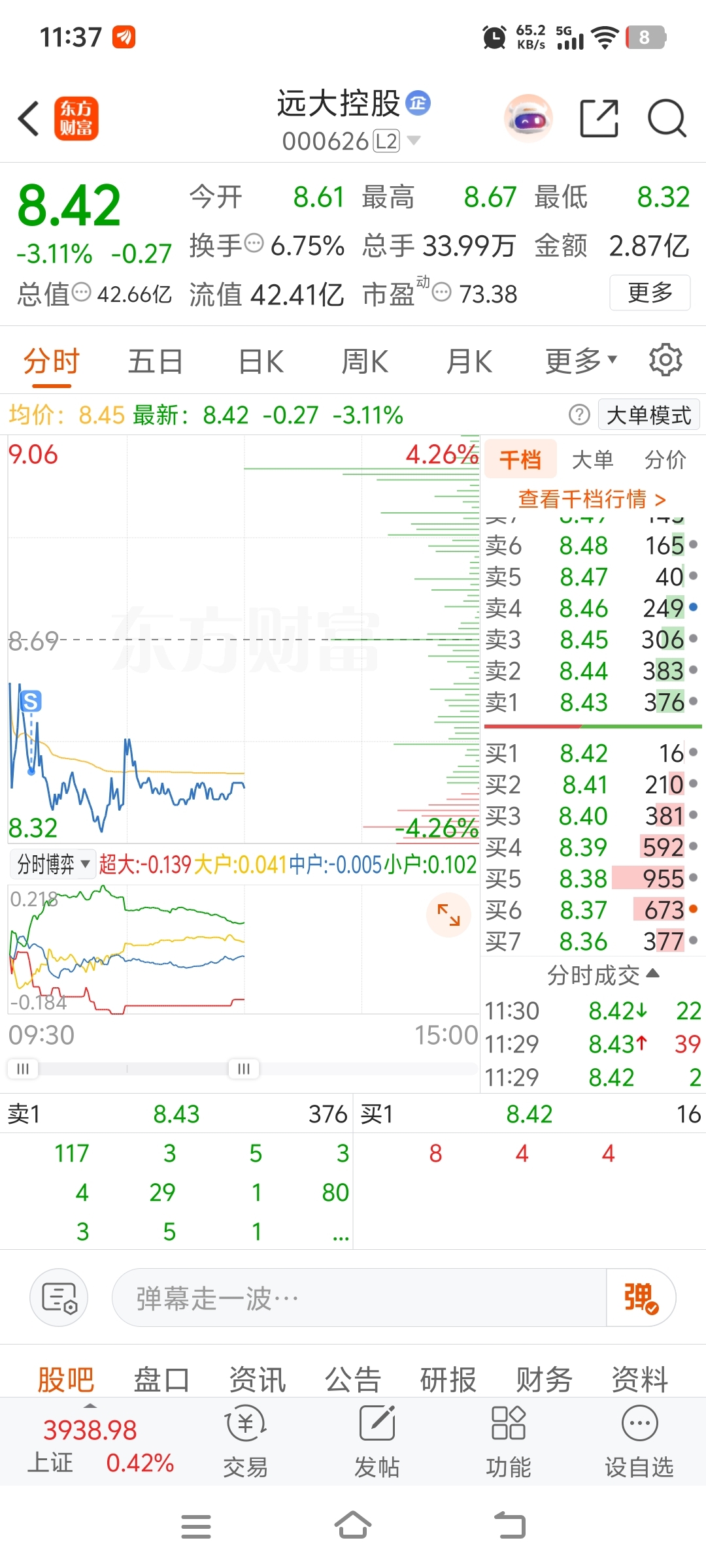 $远大控股(SZ000626)$ 割肉跑的,一点也不后悔