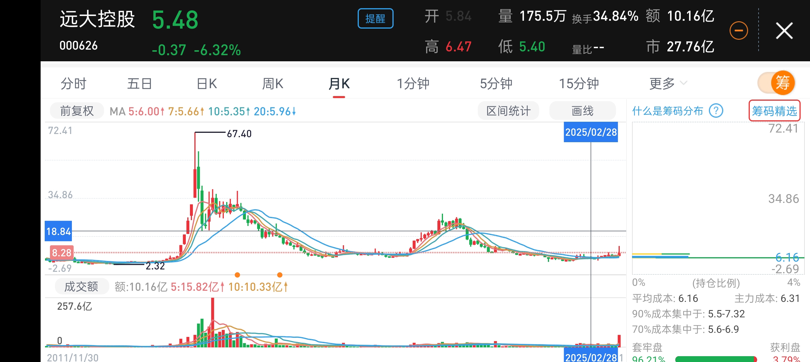 $远大控股(SZ000626)$ 随便跌,长期的,低于20都不带怕的