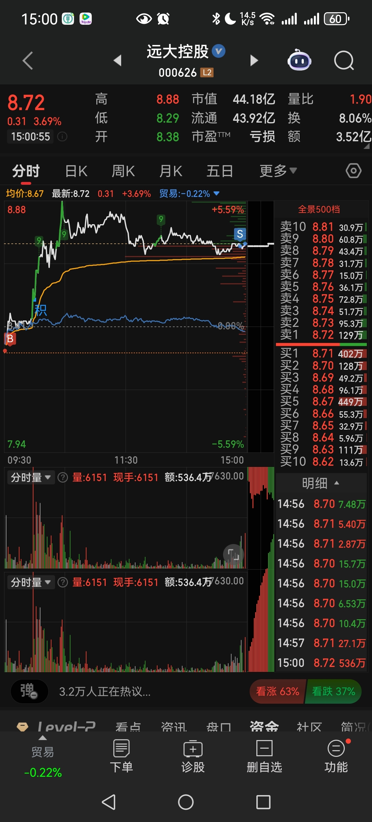 $远大控股(SZ000626)$ 赚5个点,已经满意了!