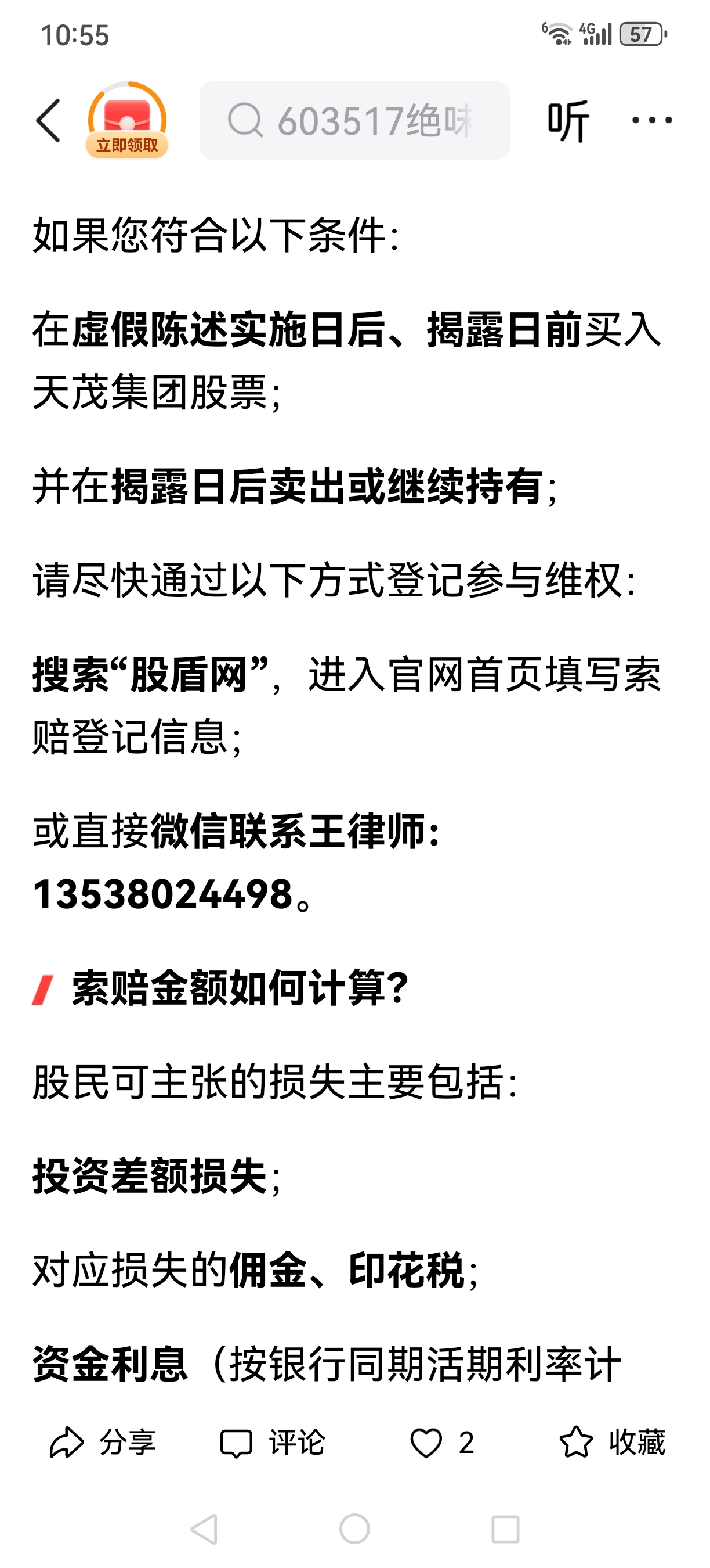 $*ST天茂(SZ000627)$ 索赔的联系方式见下面