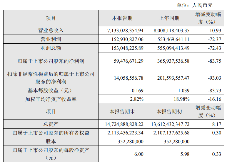 高新发展2024年度业绩快报:归母净利润同比降83.75%