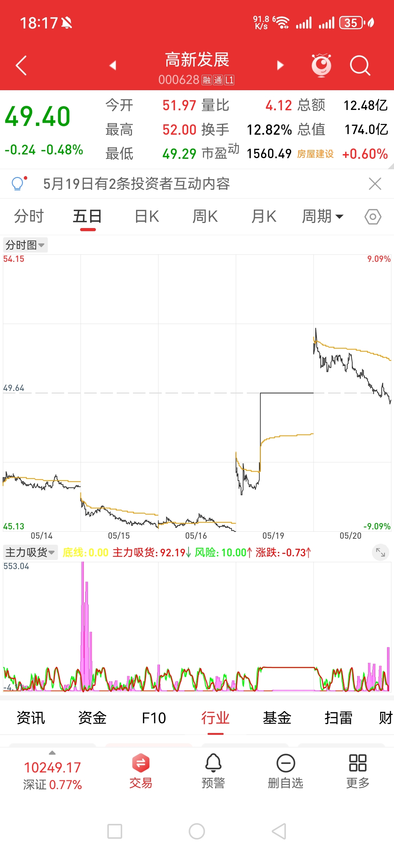 $高新发展(SZ000628)$ 下午倒是有一些吸筹的意思,但感觉也涨不了多少,明天可能是游资拉上去自救,今天高点明天应该还有同价位高点,具体是诱多还是洗盘等明天看盘面情绪吧