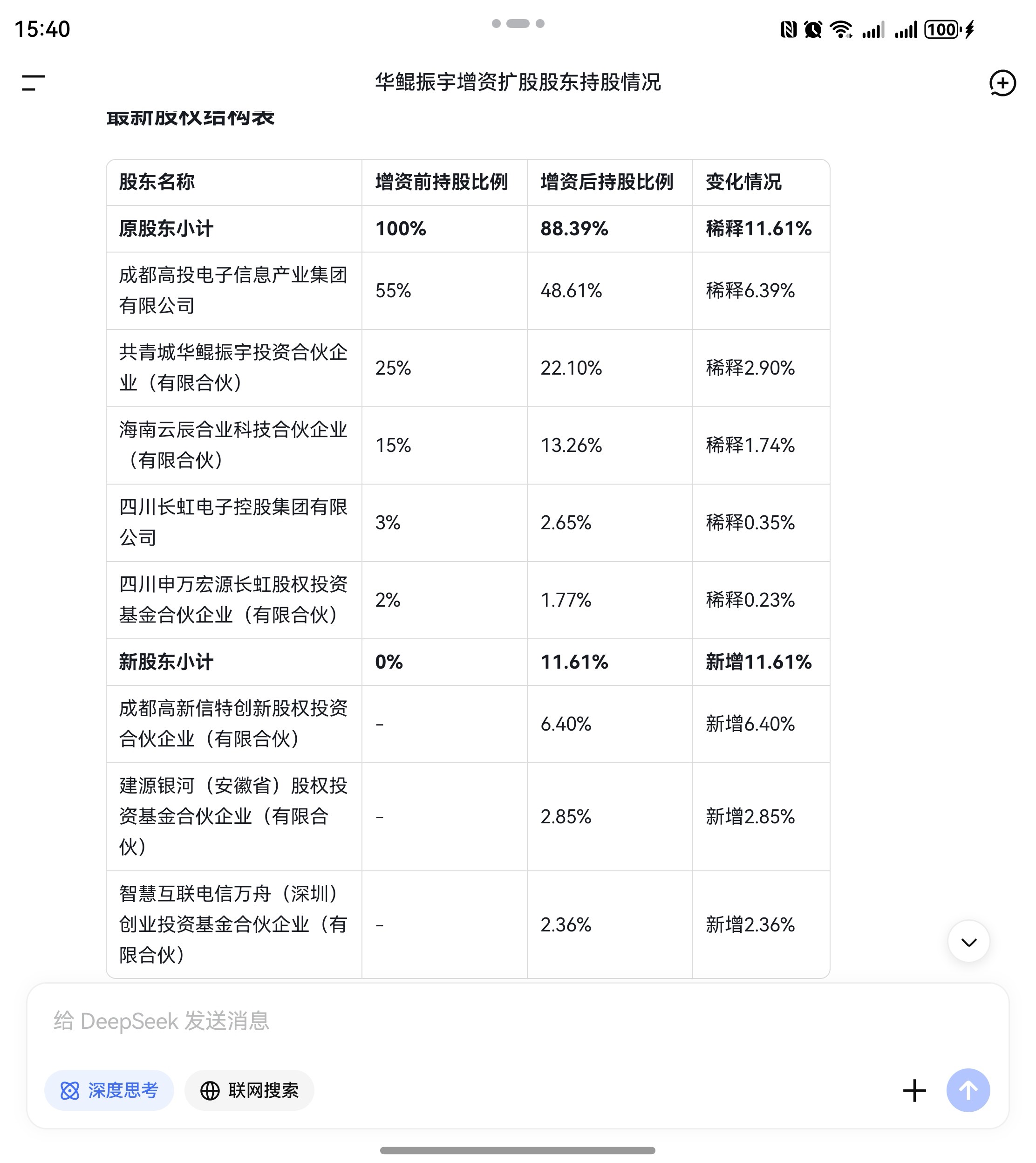 $高新发展(SZ000628)$ 最新股东占比,之前要收购的40%,被稀释了斤5%,高投加倍特依然55%,又迈一步