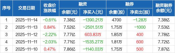 高新发展:融资净偿还1390.21万元,融资余额7.38亿元(11-14)