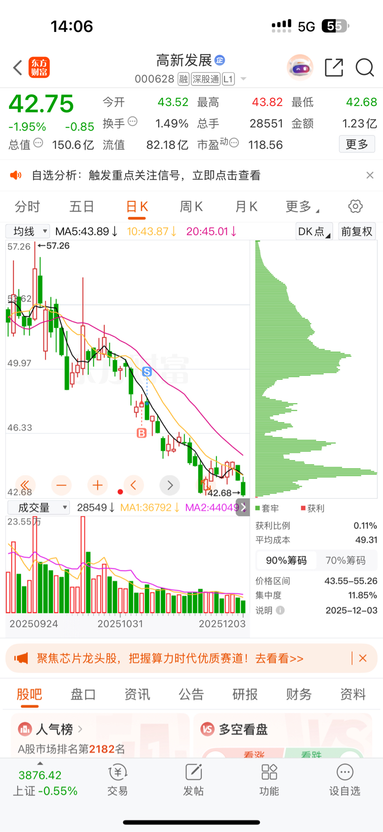 $高新发展(SZ000628)$ 抄底失败的及时醒悟