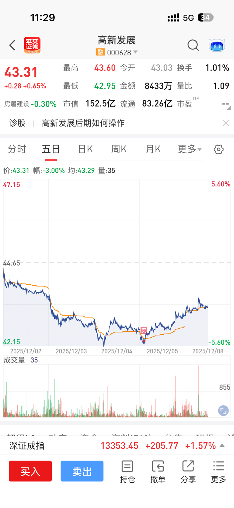 $高新发展(SZ000628)$ 真垃圾涨这么点就跳水,收盘全卖