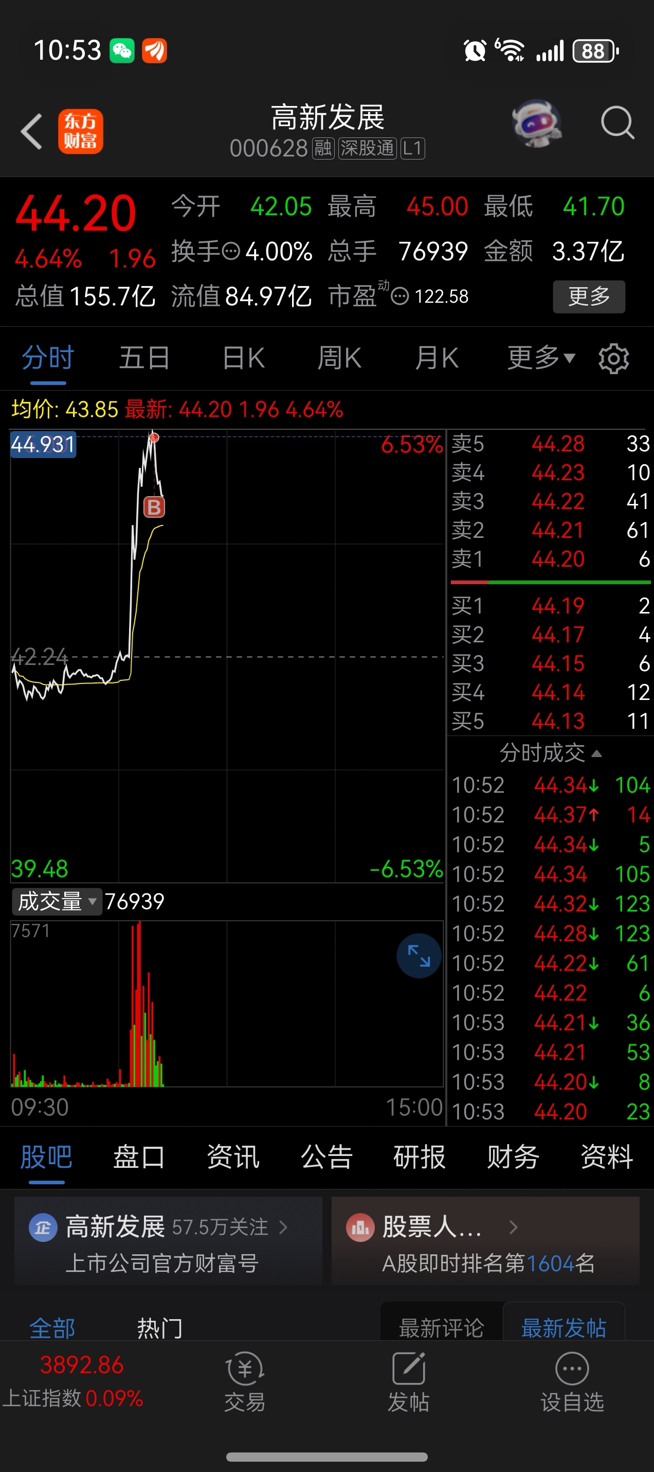 $高新发展(SZ000628)$ 都怪我 只要我一买就跌