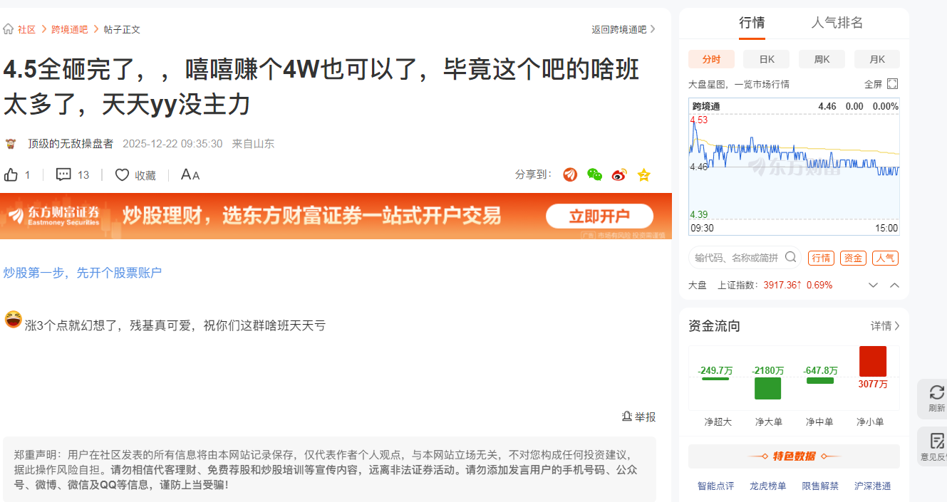 吧里的兄弟们静等风来就好,这种人没有必要去管他,400万打短线吃一个点,这是天天