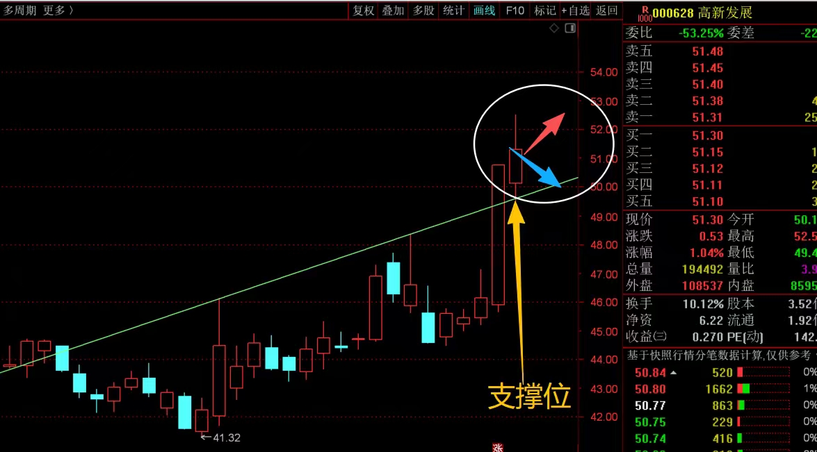 $高新发展(SZ000628)$ 近期反弹趋势走得比较强,连续的震荡拉升起来,昨天涨停,今天还能震荡拉升,短线就看能否就行延续涨势,重点看脚底趋势线的支撑情况,能稳住问题不大,但有效跌破短线就要注意回落风险了,控制好仓位应对。#复盘记录# #炒股日记#