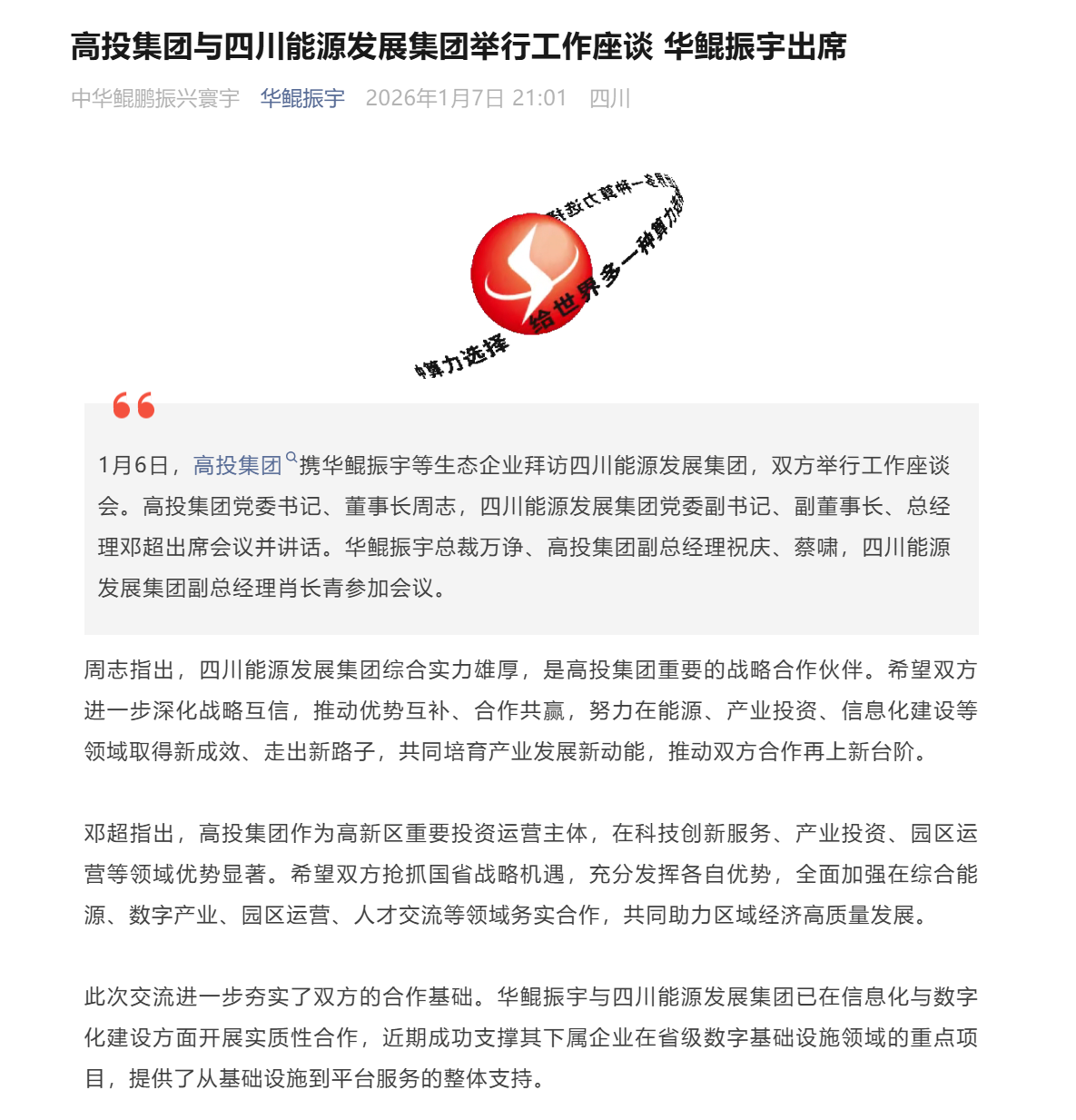 高投集团与四川能源发展集团举行工作座谈 华鲲振宇出席
